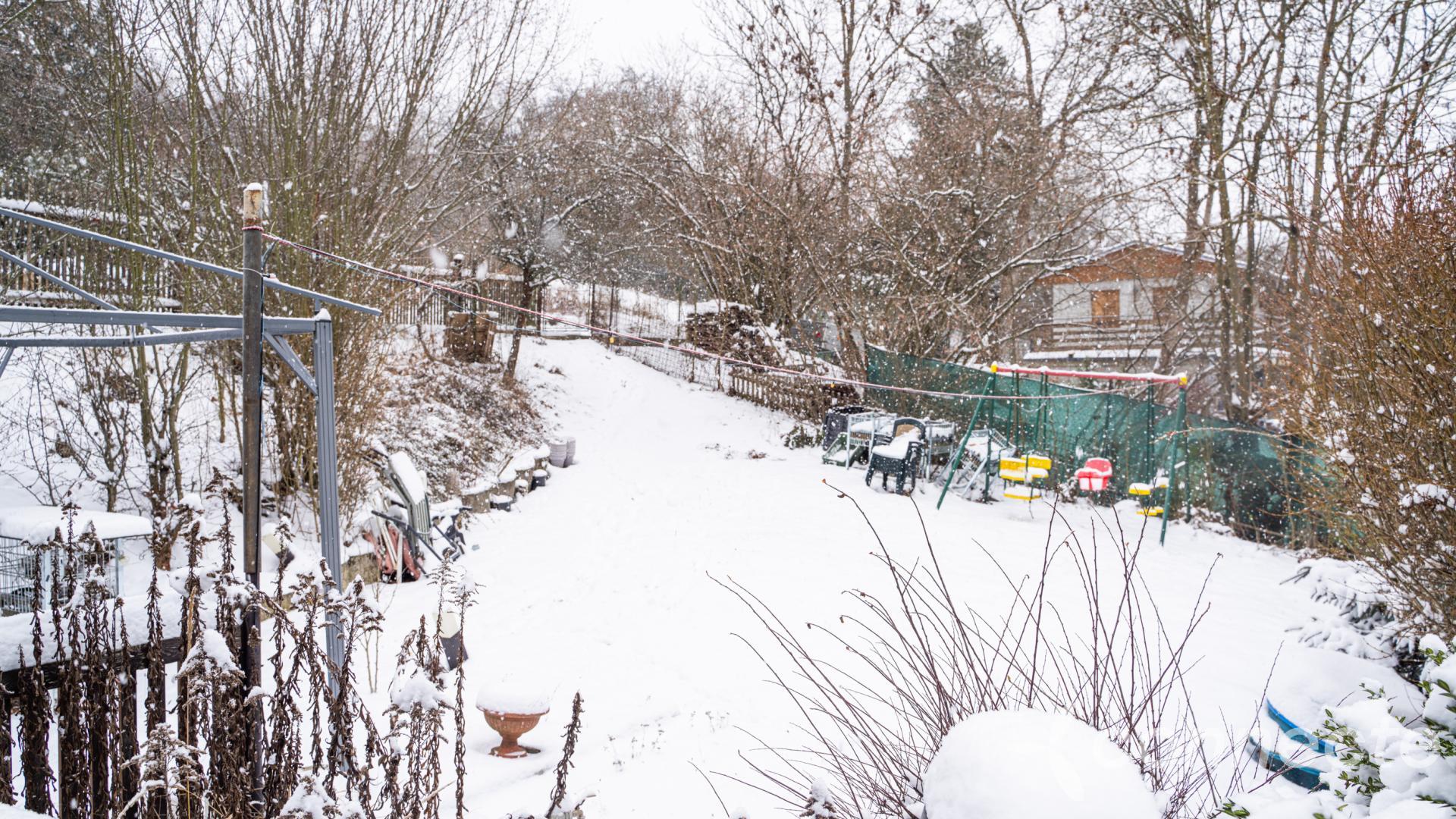 - spodní část o ploše cca 1 300 m je prudší svah, porostlý dřevinami, svažující se k sousední parcele; aktuálně nevyužívaný a tvoří jaké si přirozené oddělení pozemku od okolí
