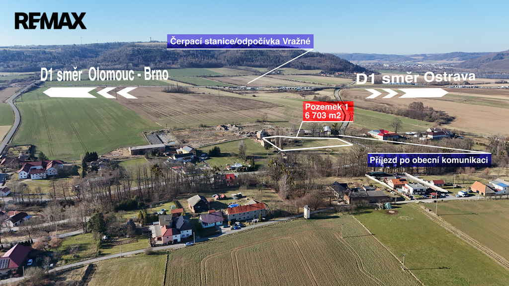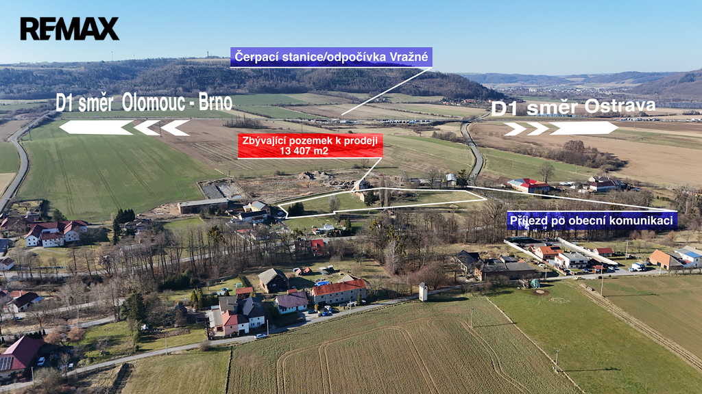 Prodej pozemku o výměře cca 6 703 m2 v obci Vražné - Hynčice