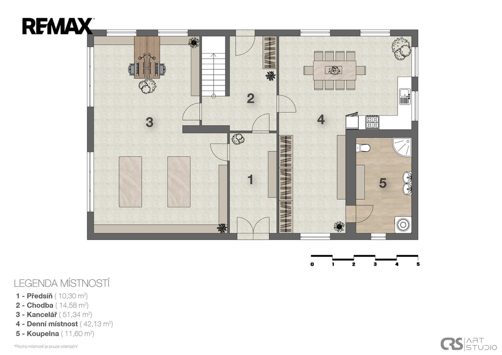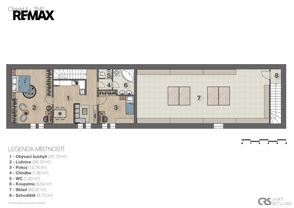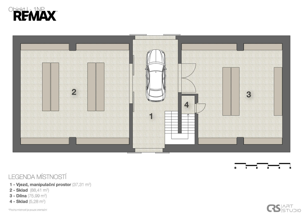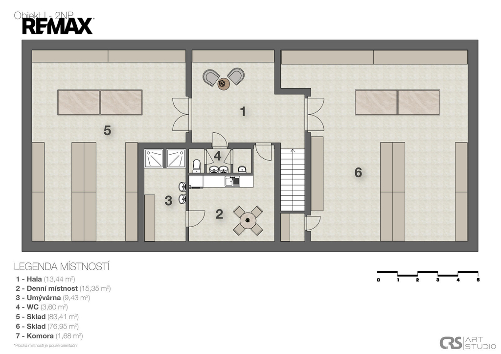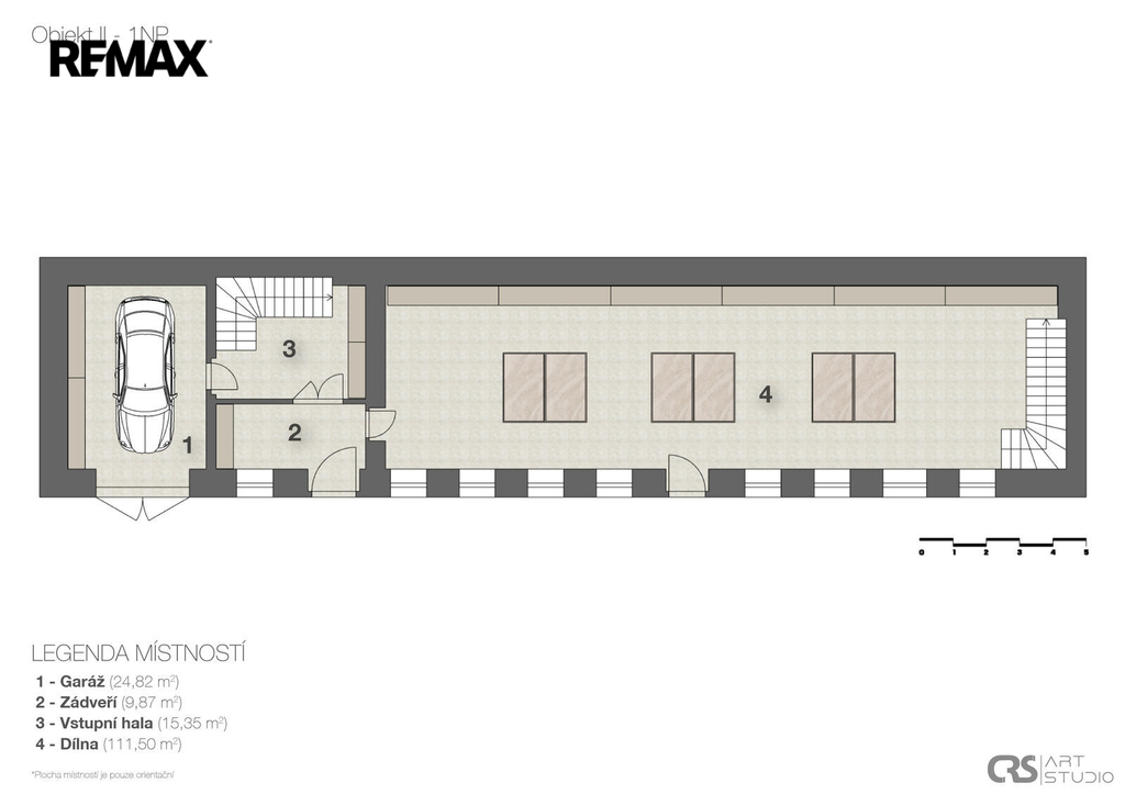 Prvním objektem v areálu je hlavní budova, která se skládá ze 2 velkých místností, chodby, podkroví a přízemí disponuje užitnou plochou 133 m2. Druhá budova je stodola s užitnou plochou 215 m2 a třetím objektem je dílna o 3 místnostech s podkrovím a užitnou plochou 159 m2 v přízemí, dílna má 2 obytné místnosti a třetí místnost je výrobní prostor. Půdní prostory nad dílnou i v hlavní budově mají stejný půdorys jako objekty a stejnou užitnou podlahovou plochu. Dále jsou zde menší původní sklípky.