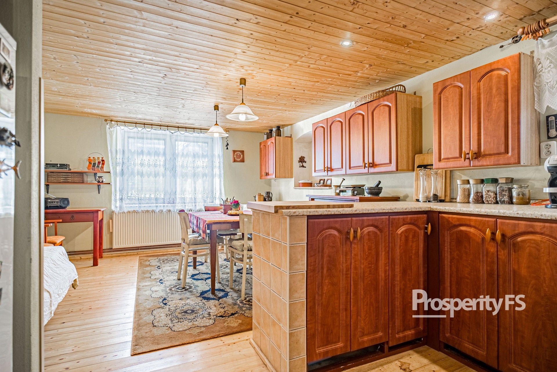 Nemovitost má dvě patra a je částečně podsklepená. V přízemí najdete prostorný obývací pokoj s útulným krbem, velkou kuchyni s jídelním koutem a komfortní koupelnu. V prvním patře je ložnice a rozlehlý půdní prostor, který nabízí široké možnosti pro budoucí vestavbu či rozšíření obytné plochy. Dále jsou k dispozici další místnosti, jež lze využít jako ložnice či pracovny podle vašich potřeb.