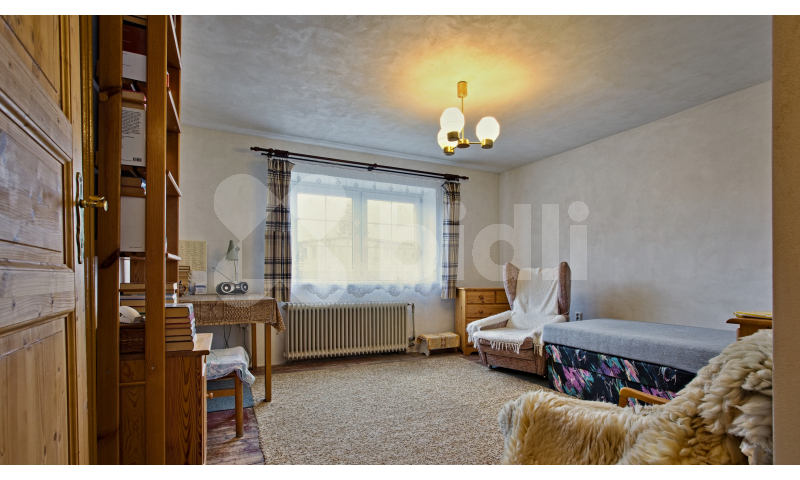V přízemí domu je vstupní chodba, WC, vstup do sklepa, kuchyně, tři pokoje, a v jednom z pokojů krbová kamna. Je zde další WC, koupelna s vanou a výklenkem na umístění pračky, sušičky. Z předsíně se dostaneme po schodech do patra, kde je hala která vybízí k vytvoření čtecího koutku a hlavní dominantou je krásné zábradlí.