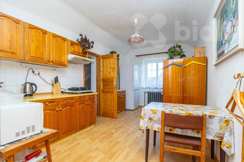 Dům je po rekonstrukci, v přízemí nové topení, rozvody vody. Vytápění novým elektrickým kotlem Bosch, je zde i kotel na pelety se zásobníkem a podavačem. Bojler a příprava na druhý bojler. Všechny kotle a bojlery jsou umístěny ve sklepě.