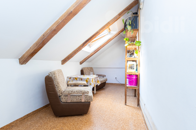 V patře je kuchyně, samostatné WC, koupelna s vanou i sprchovým koutem, prostor pod šikminou, kde je střešní okno u kterého lze vybudovat prostor na pračku, sušičku a třeba šatnu. Tento prostor je i na opačné straně. Dále jsou zde čtyři další pokoje.