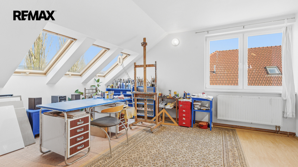 Dispozice domu nabízí čtyři pokoje a také ateliér či pracovnu, který může sloužit nejen pro uměleckou tvorbu, ale také jako pracovna, studio nebo prostor pro podnikání z domova.