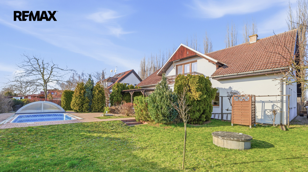 Velkou předností domu je zahrada poskytující dostatek soukromí i prostoru pro relaxaci. Dominantou je bazén s posuvným zastřešením, vyhřívaný tepelným čerpadlem, který umožňuje koupání po větší část roku. Na pozemku se nachází také studna pro zalévání zahrady, upravené okrasné porosty a venkovní udírna s grilem, ideální pro letní posezení s rodinou a přáteli.