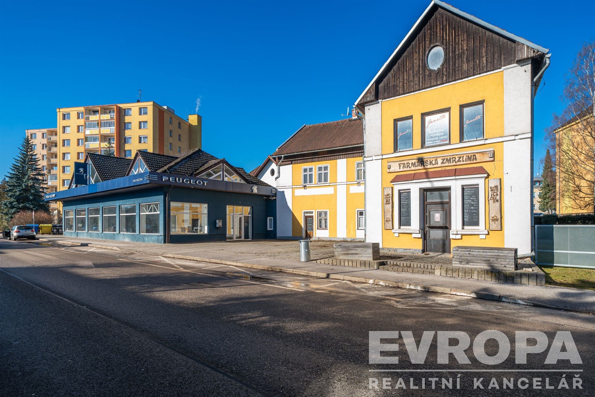 Prodej multifunkčního areálu o rozloze 1 968 m2 na hlavní ulici ve Vrchlabí – showroom Peugeot, kanc