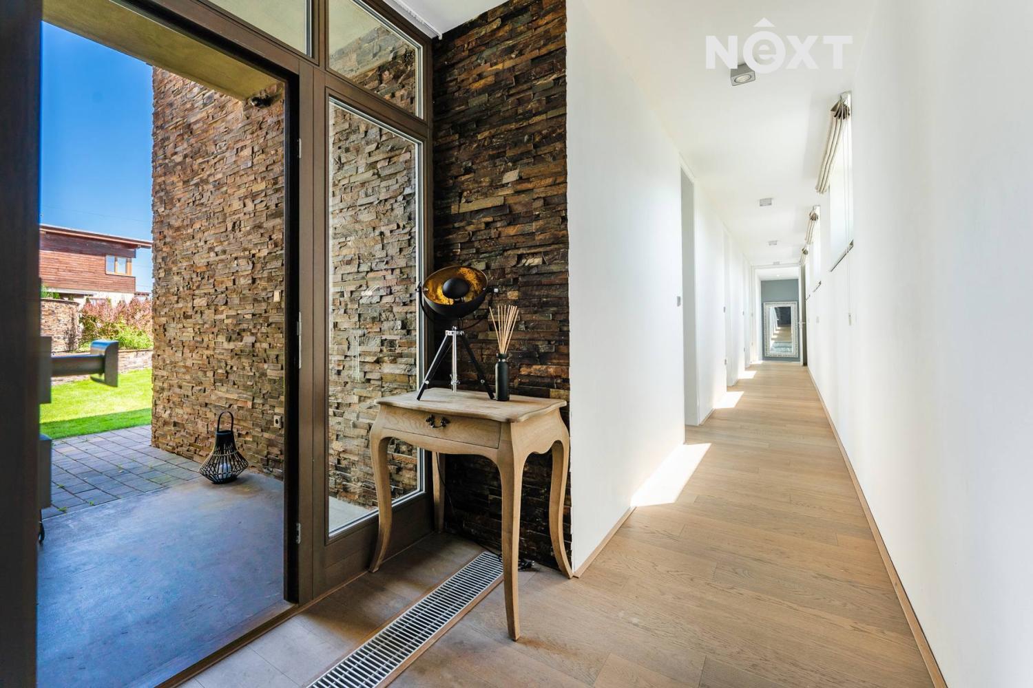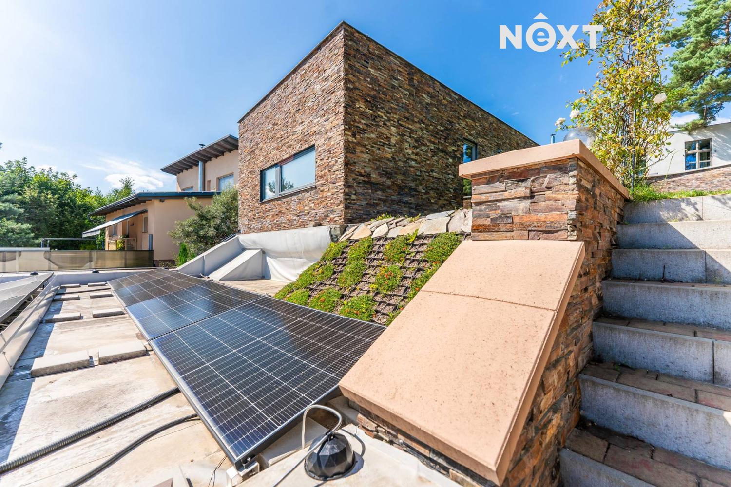Dům o zastavěné ploše 320 m², podlahové ploše 299 m² a celkové velikosti pozemku 1 635 m² je postaven z nadstandardních materiálů a vybaven moderními technologiemi, které zajišťují komfortní a úsporné bydlení.