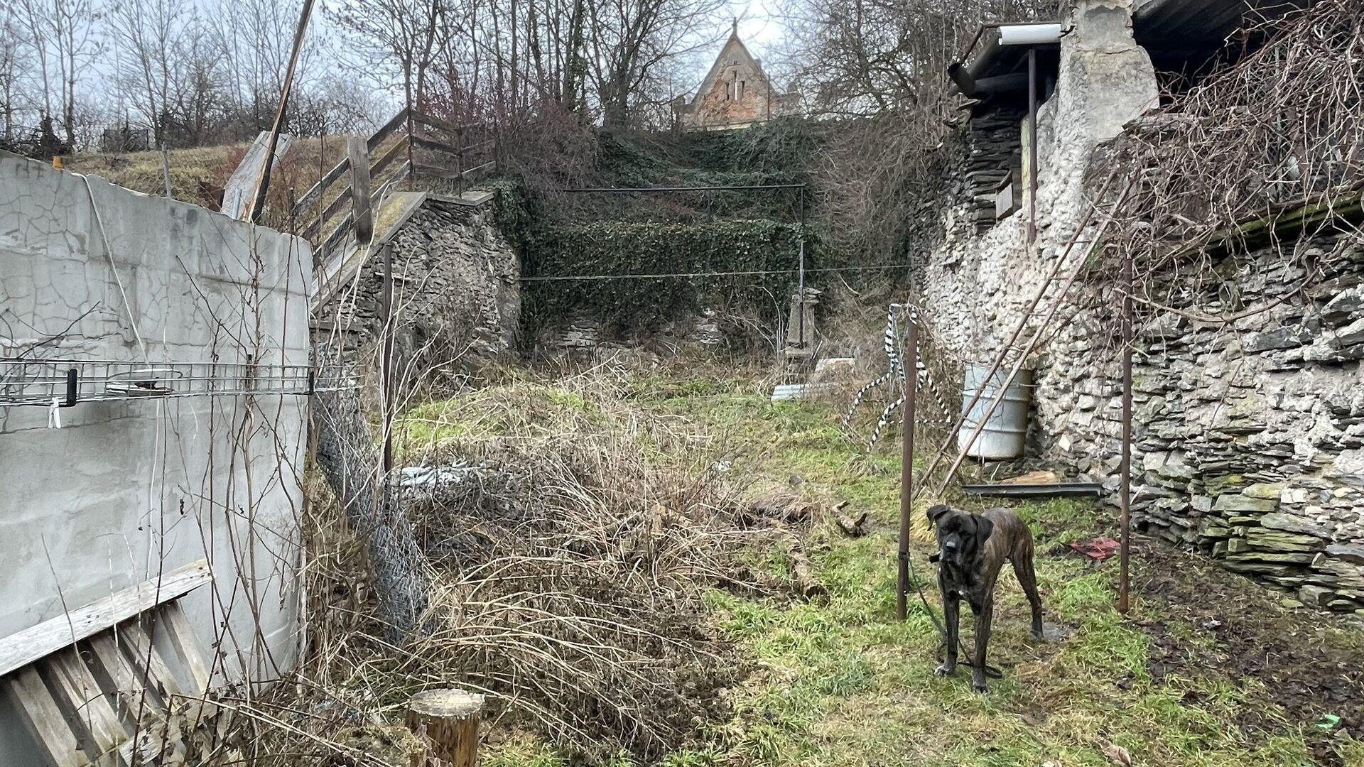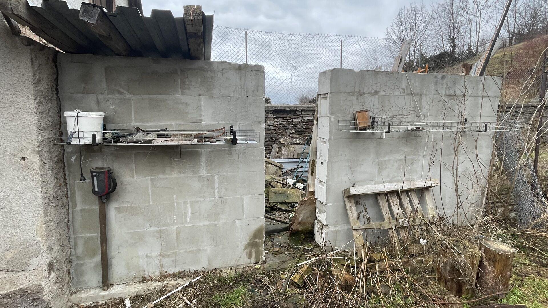 Za domem je zděná kůlna, užívaná jako pokoj mimo dům s kamny na pevná paliva. Za ní byla zahájena další stavba, ale nebyla dokončena.