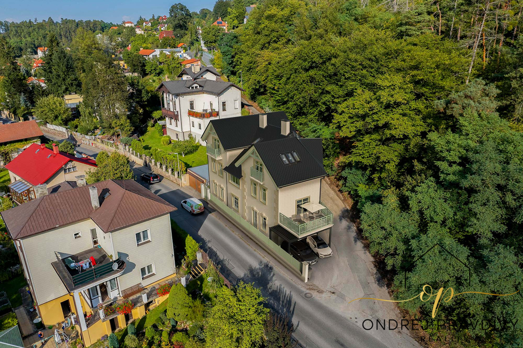 Byt se nachází v posledním 3. nadzemním podlaží a po kompletní přestavbě se může pyšnit nadstandardní kvalitou provedení a použitých materiálů. Provedení zahrnuje dřevěné plovoucí podlahy, dřevěná euro okna s trojskly, designové dlažby a nadčasové obklady. Značková sanita firem Laufen a Hansgrohe. Dále jsou datové rozvody, příprava na zabezpečení a elektromobilitu. Díky zateplení celého domu i vlastnímu kondenzačnímu kotli pro vytápění a ohřev vody budou provozní náklady skutečně příznivé. Převažující orientace na jiho-západ zajišťuje dostatek slunečního světla a stropy s přiznaným trámovím zase útulný pocit s puncem historie. Příslušenství bytu zahrnuje do zeleně orientovaný balkón, vlastní parkovací stání a prostorný sklep 11 m² na jakékoliv sportovní či sezónní vybavení. Další úložné prostory jsou v půdě nad bytem.