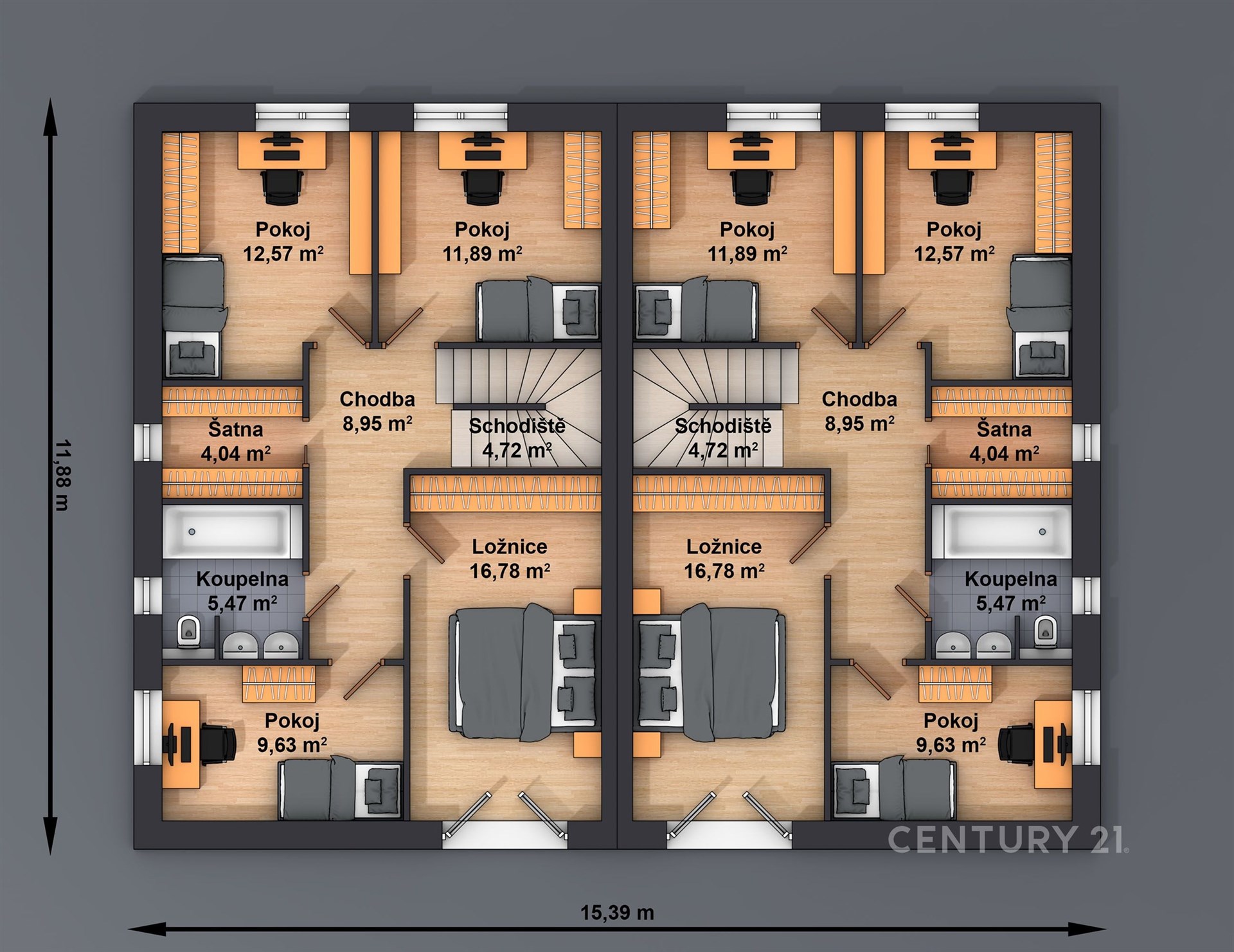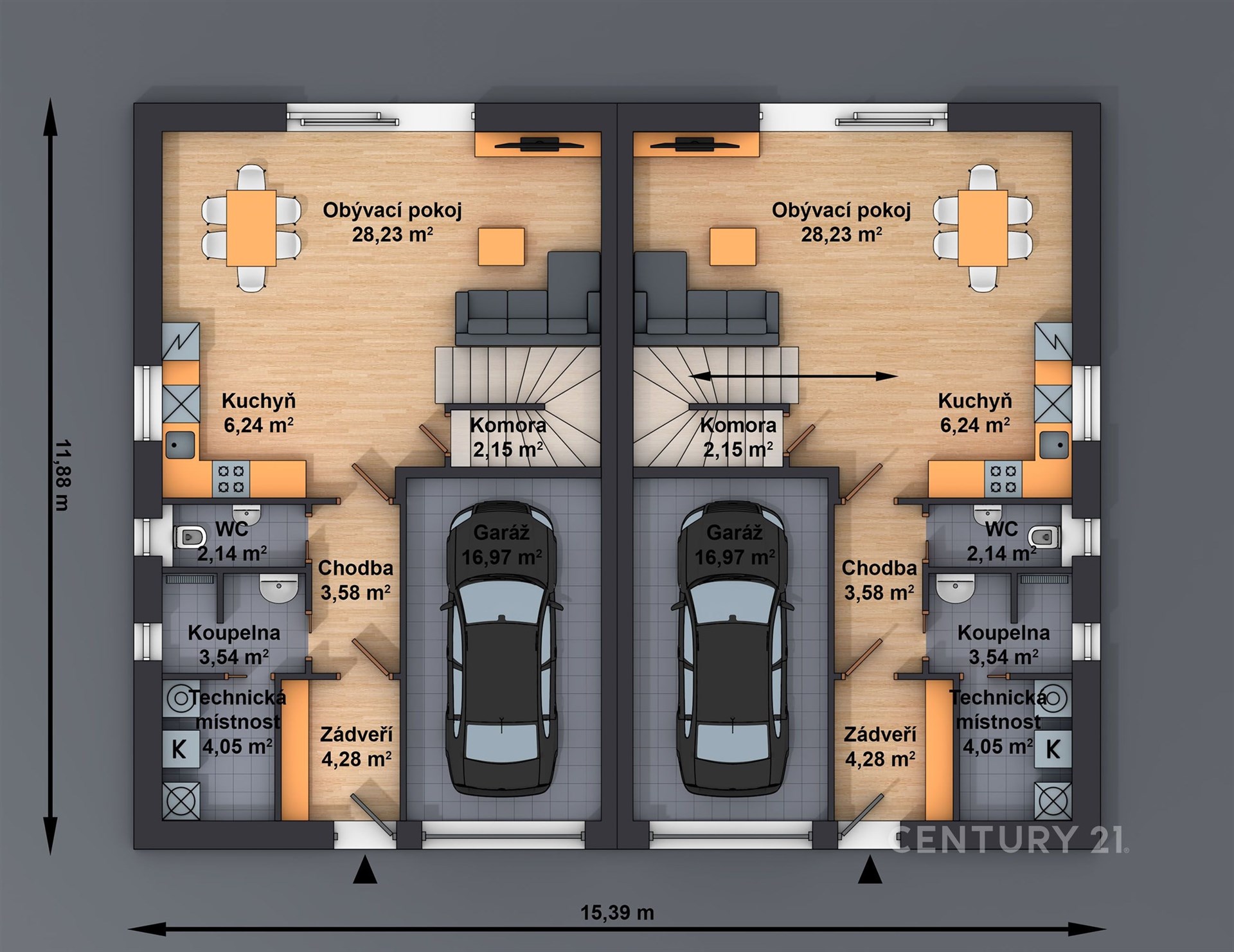 V tuto chvíli je možné koupit pouze jednotku A (pravou) o dispozici 5+kk, druhá jednotka je již PRODANÁ.