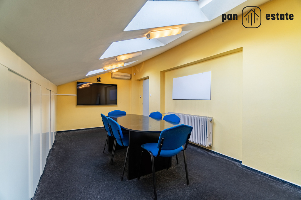 – Podkroví: jednací místnost, kanceláře, sklady a technická místnost s kondenzačním kotlem; instalované klimatizační jednotky