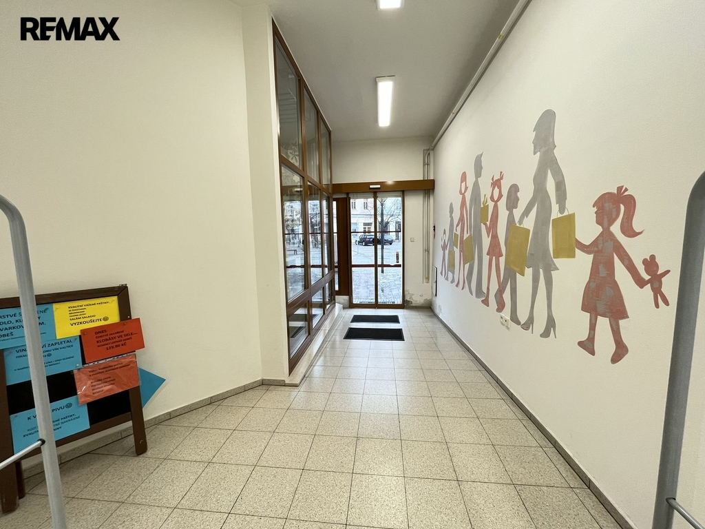Prostory se nachází v přízemí budovy a mají hlavní vstup přímo z náměstí a další vstup ze zadní části nemovitosti.