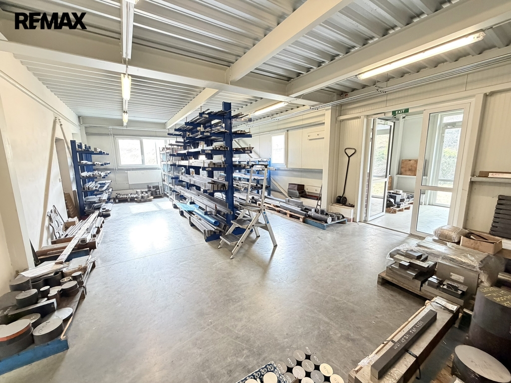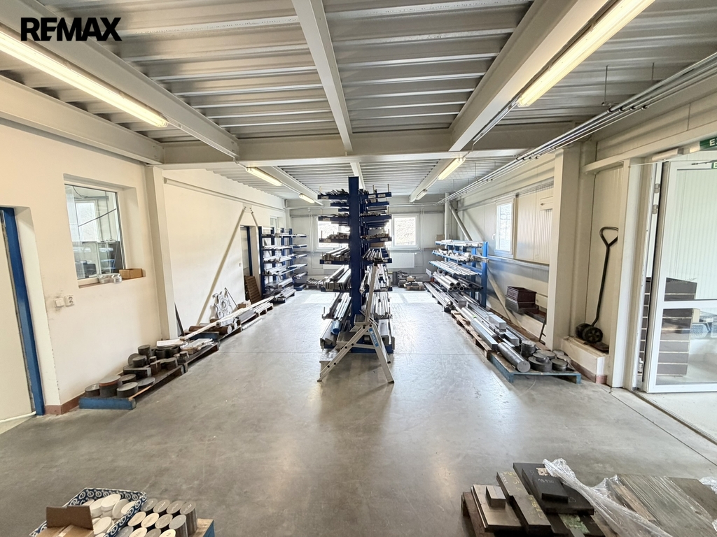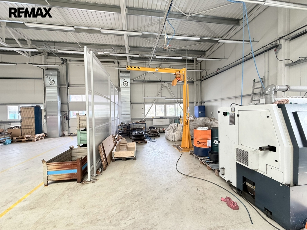 Hala je vhodná pro lehkou výrobu, montáž, kompletaci i skladování. Prostor je světlý, má vysoké stropy (čistá výška 5,1 m) a odolnou betonovou podlahu s vysokou nosností. Vstupní vrata o rozměrech 3,6 x 3,6 m.
