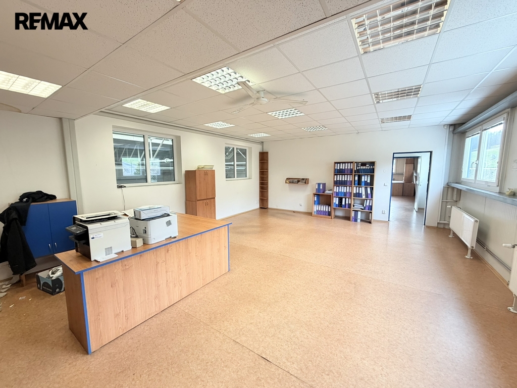 Kanceláře jsou moderní, vybavené a nabízí příjemné pracovní prostředí s výhledem do haly i venkovního prostoru.