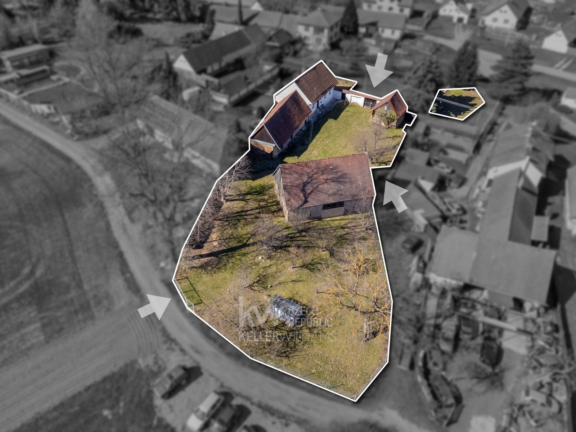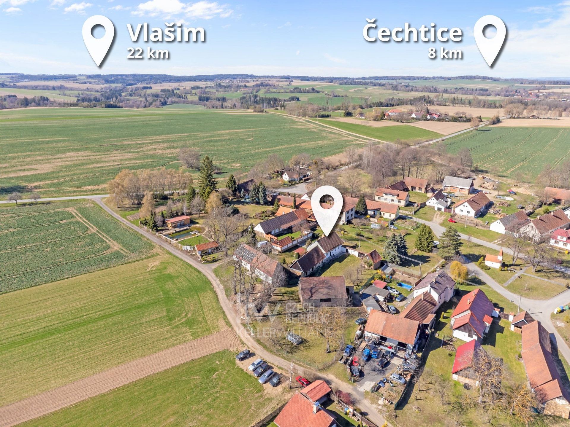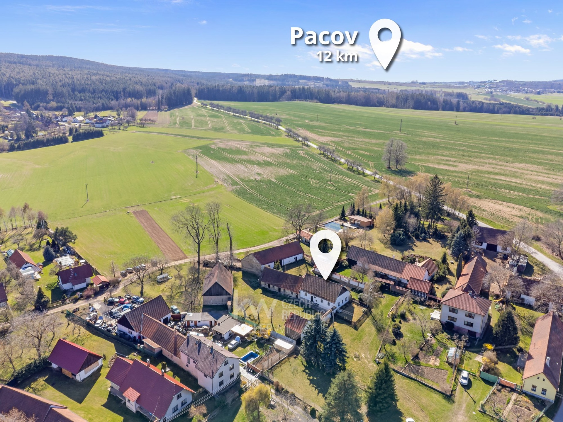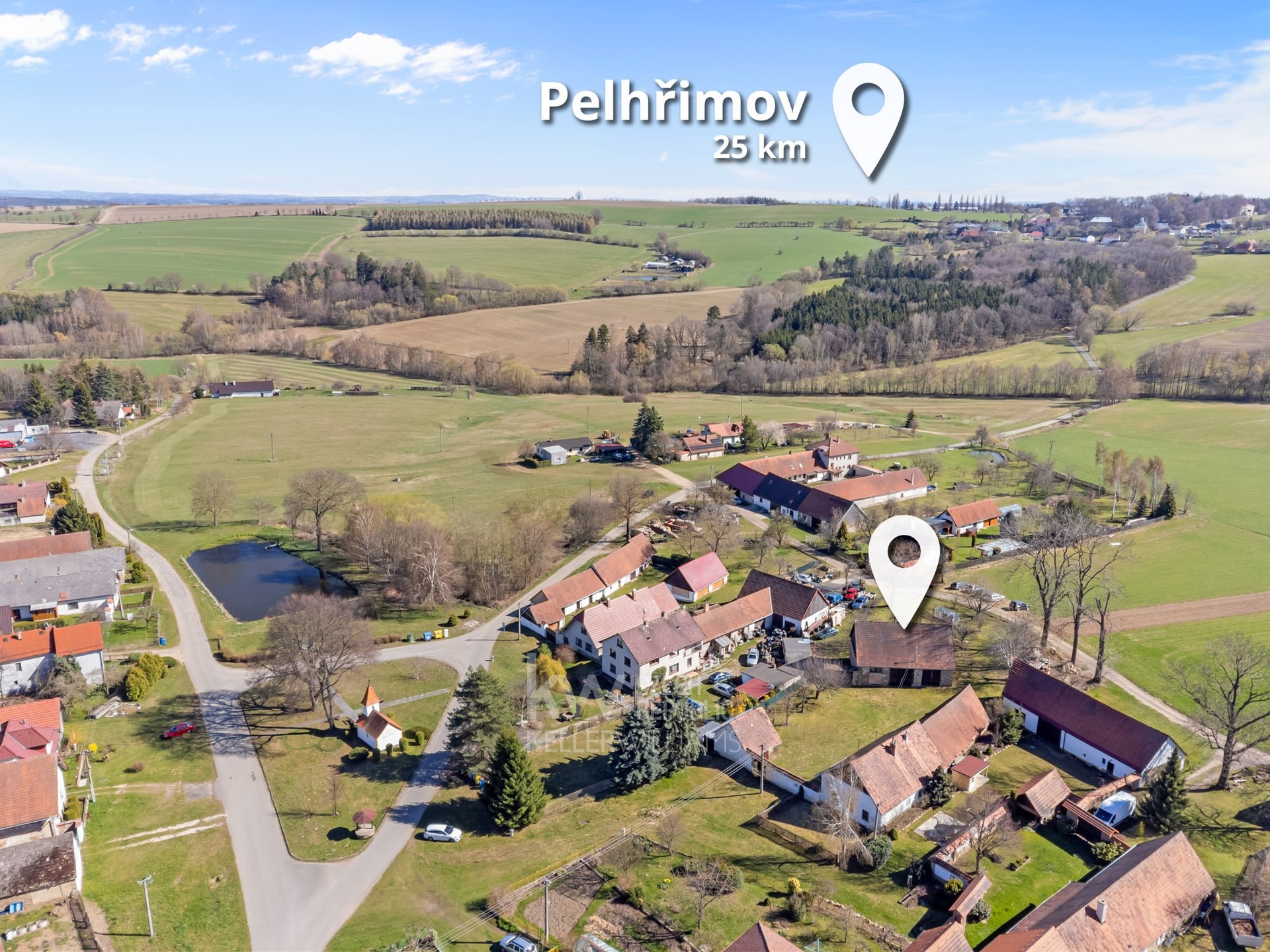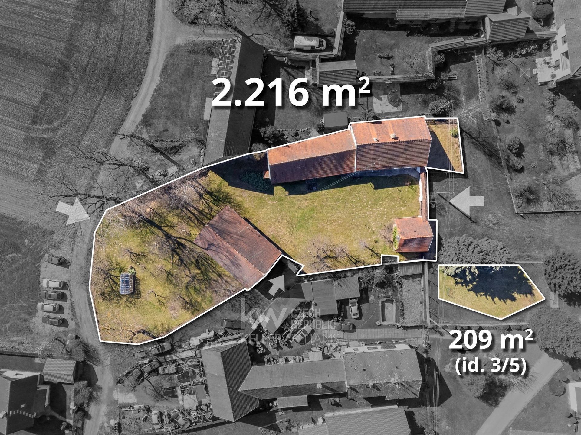 Předmětem prodeje je soubor pozemků o výměře 2216 m². Dle platného územního plánu jsou pozemky vedeny jako plochy „bydlení v rodinných domech – venkovské“. Nachází se zde obytná chalupa s navazujícími vedlejšími hospodářskými stavbami (maštal, stodola, podsklepený špýchar), vše na uzavřeném dvoře, což zajišťuje vyšší úroveň soukromí.