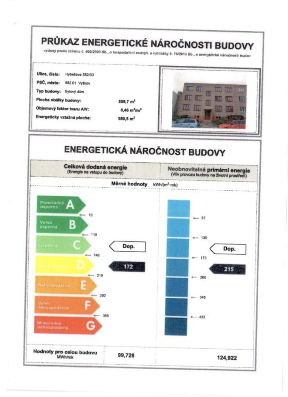 - Energetický ukazatel podle vyhlášky: č. 78/2013 Sb.