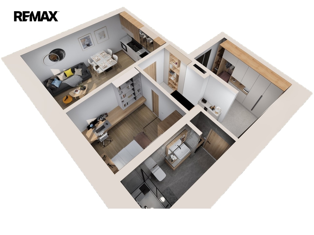 | Dispozice/podlahová plocha: | 2+kk/52 m² |