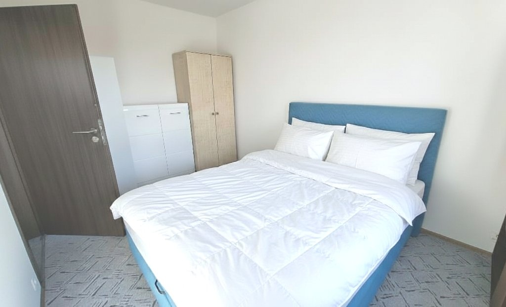 Veškeré vybavení bytu je zánovní, v bytě zůstává kuchyňská linka. Byt je dále vybavený 2 klimatizačními a rekuperačními jednotkami, venkovními, elektricky ovládanými žaluziemi ve všech oknech, bezpečnostními vstupními dveřmi, domovním zvonkem s videotelefonem. Na podlahách v obou místnostech je vinyl (od počátku užívání bytu pokrytý koberci, je tedy v perfektním stavu), v předsíni, v koupelně a komoře dlažba.