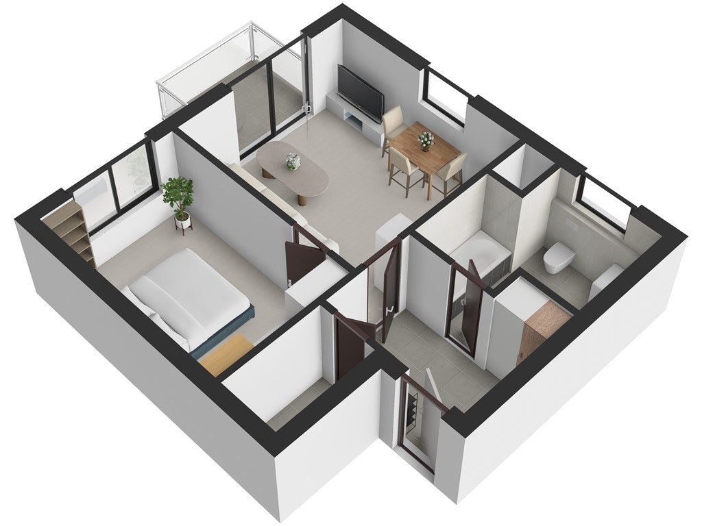 Obývací pokoj s kuchyňským koutem má rozlohu 18 m2, ložnice 12 m2, ostatní plochu tvoří prostorná předsíň 6 m2, koupelna s WC 6 m2 a komora 3 m2.