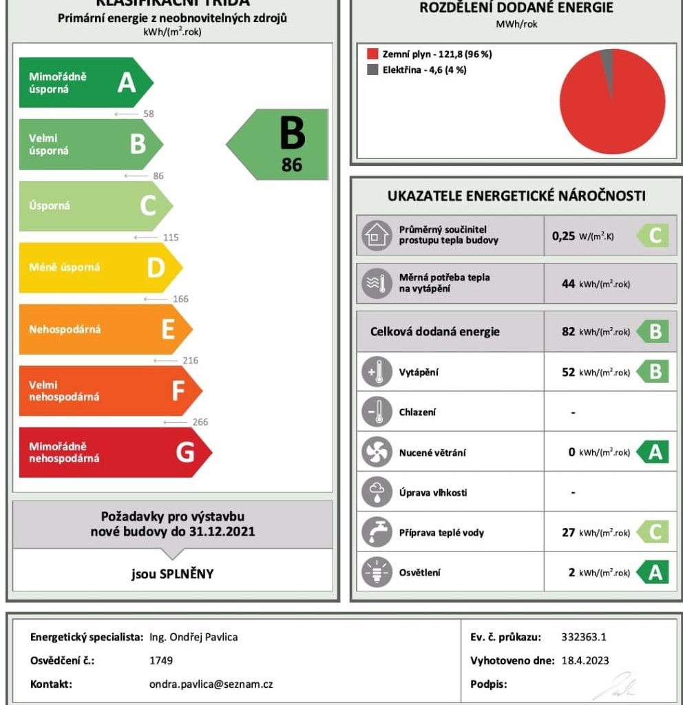 - Ukazatel energetické náročnosti budovy: 86 kWh/m²