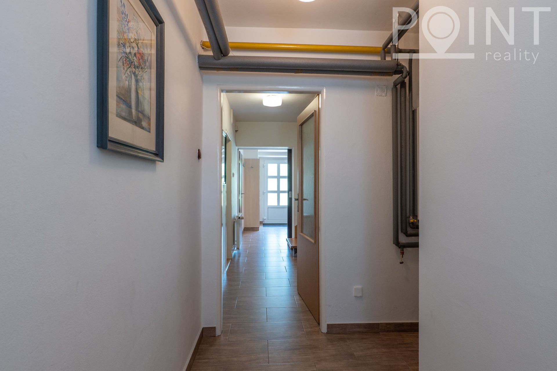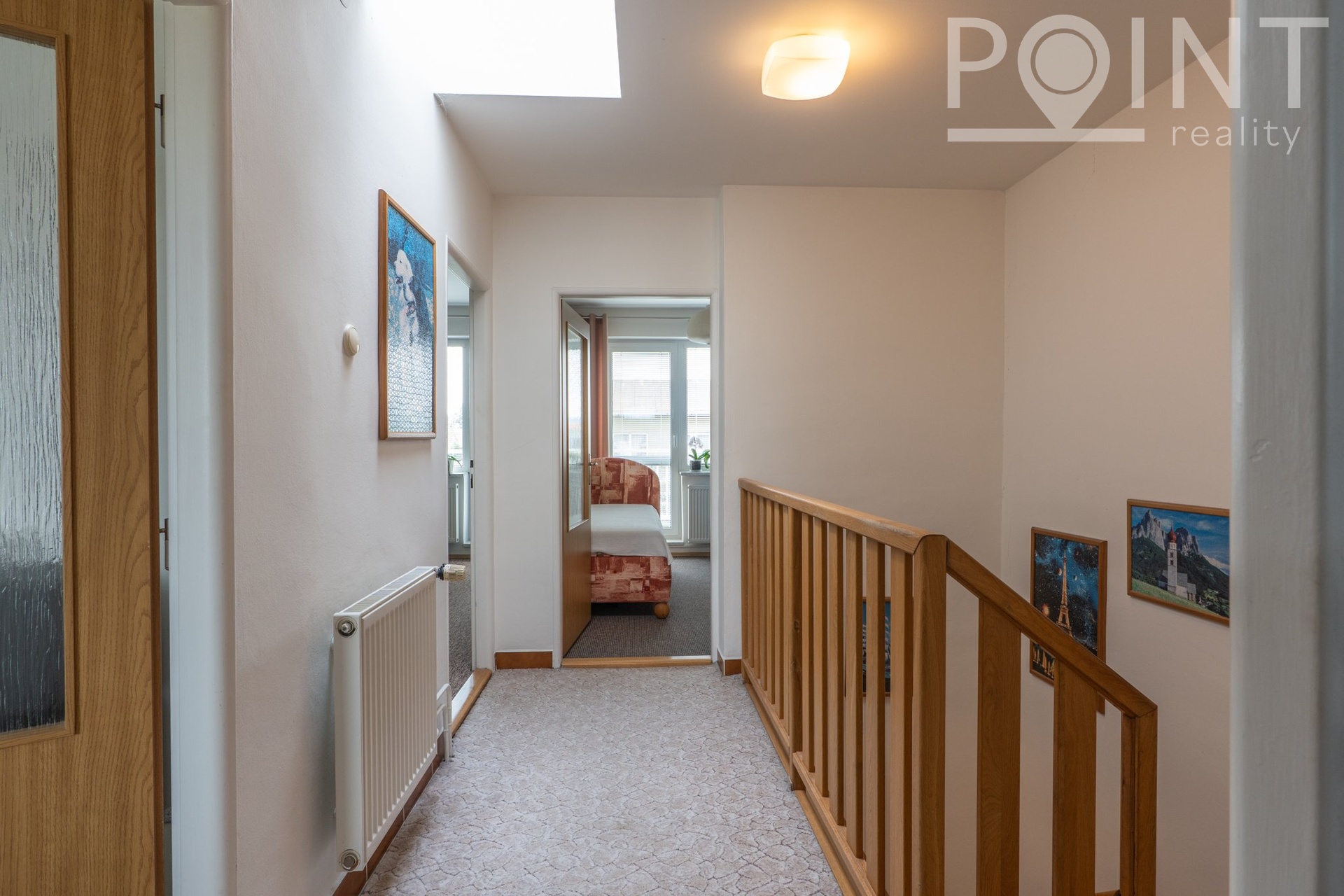 Chodba je prosvětlena střešním světlíkem.