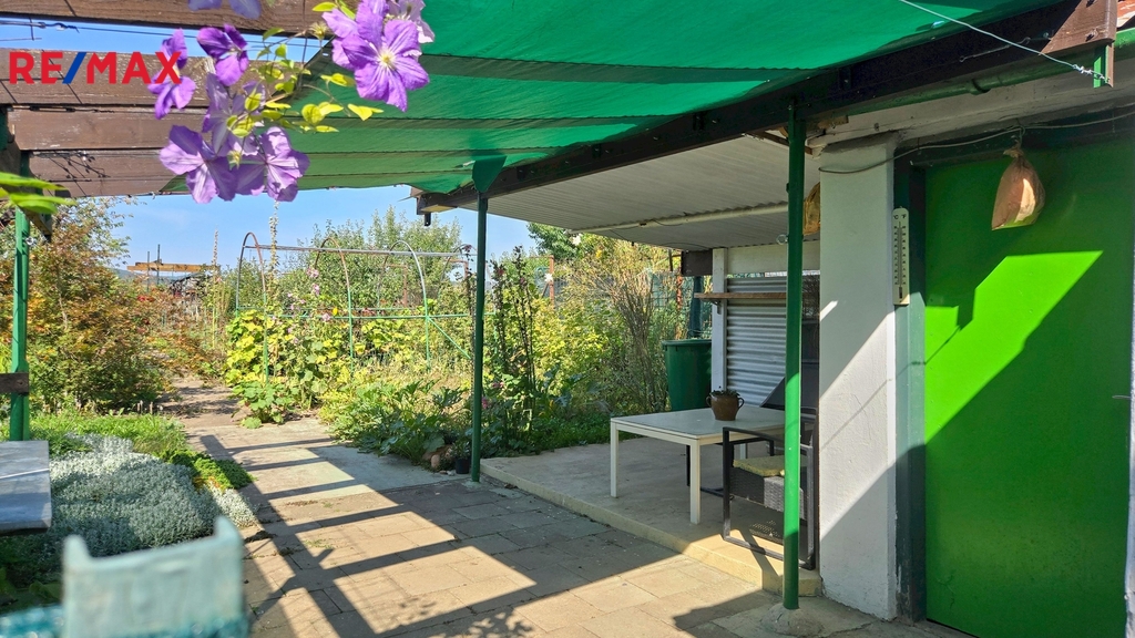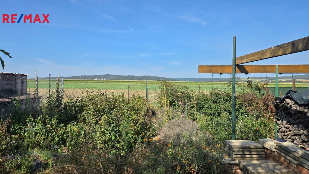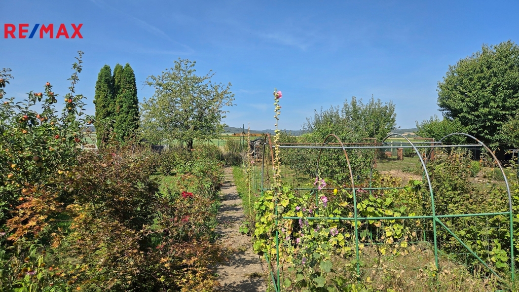 Za domem je posezení s výhledem na zahradu. Zahrada je orientována západním směrem je z ní krásný výhled na zapadající slunce. Za zahradou se nachází pole.