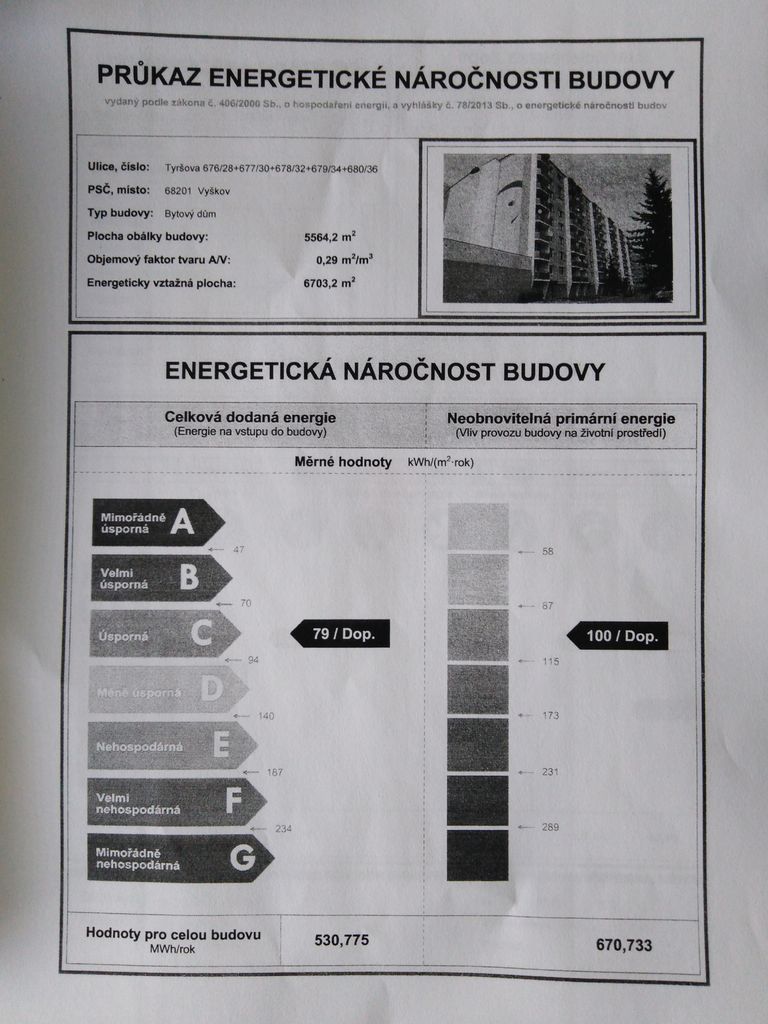 - Energetický ukazatel podle vyhlášky: č. 78/2013 Sb.