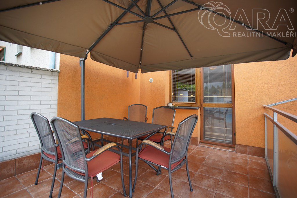 Nabízíme k pronájmu rodinný dům 4+kk s jídelnou, šatnou, terasou, garáží a bazénem ve Vyškově. V přízemí rodinného domu se nachází vstupní hala s krbem, dále technické místnosti (kotelna s kondenzačním kotlem, prádelna se sprchovým koutem a pračkou). V prvním patře je prostorný obývací pokoj propojený s jídelnou a kuchyní, šatna, koupelna (sprchový kout, umyvadlo, WC). Přímý vstup na terasu s posezením a bazénem, ideální pro odpočinek a letní grilování. Kuchyně je vybavena sklokeramickou varnou deskou, myčkou na nádobí, lednicí. Ve druhém patře jsou k dispozici tři samostatné pokoje, z toho dva propojené balkonem, dále koupelna s vanou, umyvadlem a WC. Dům se nachází v klidné ulici, s možností parkování přímo před domem, nedaleko centra Vyškova. Měsíční nájemné je 33.000,- Kč + 8.000,- Kč zálohy na energie. Součástí záloh je připojení k internetu včetně sledování TV přes internet. Majitel požaduje kauci ve výši jednoho měsíčního nájmu včetně energií. Provize RK je 33.000,- Kč.