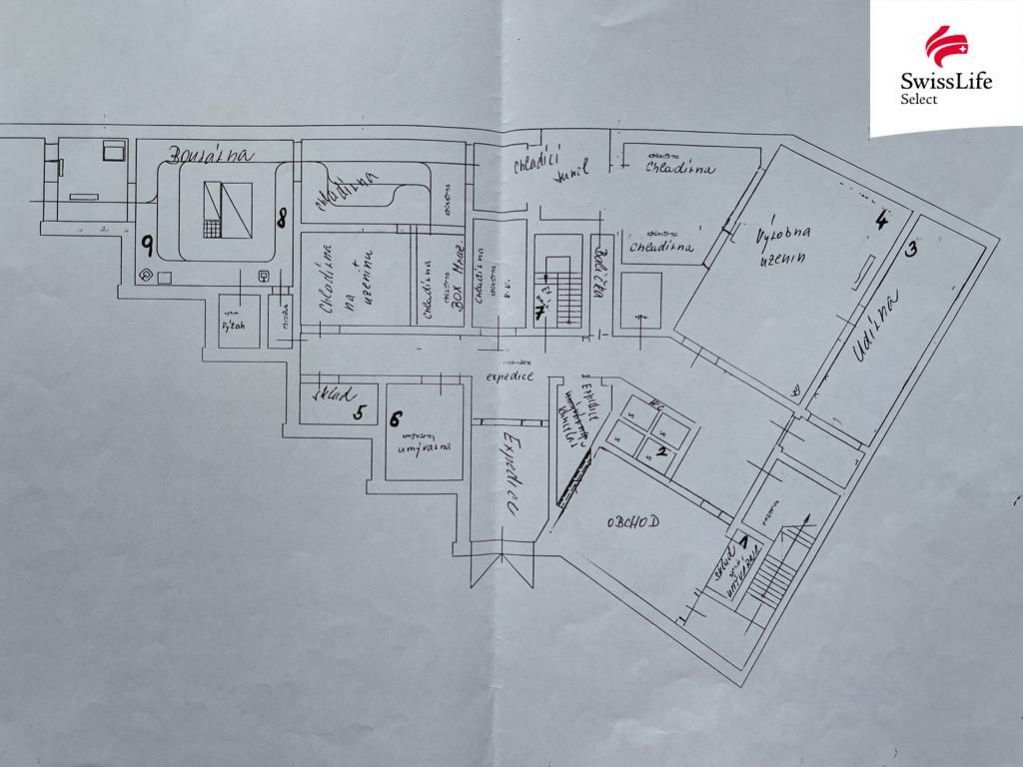 Zachované chladicí a mrazicí prostory, možnost využití pro gastro, skladování či jiný provoz.
