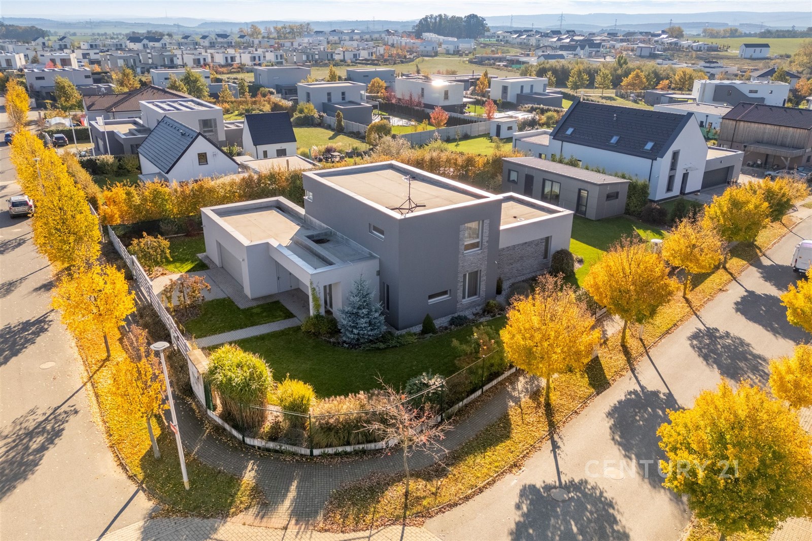 Technologie zde pracují pro vás. O komfort se stará systém Loxone, který řídí osvětlení, žaluzie – připravený na rozšíření o plně inteligentní domácnost. Tepelné čerpadlo zajišťuje energetickou úsporu, podlahové vytápění a chlazení, Jablotron chrání dům a je napojený na pult centrální ochrany, kamerový systém Blink sleduje exteriér a optická síť O2 poskytuje vysokorychlostní internetové připojení.