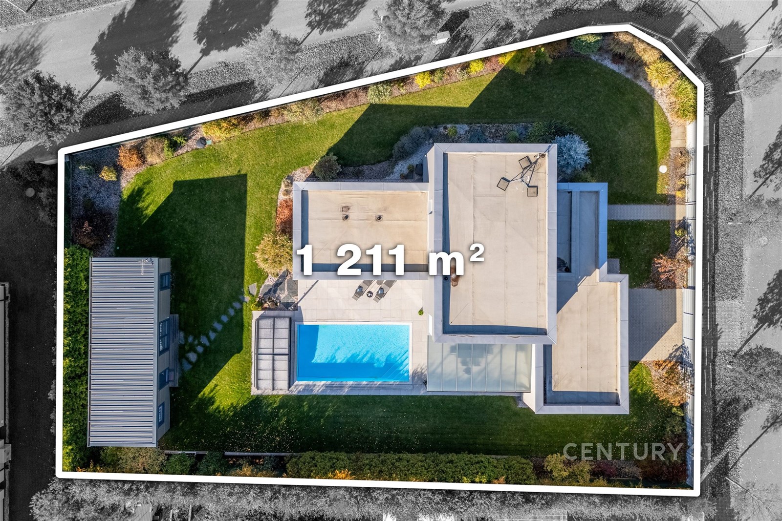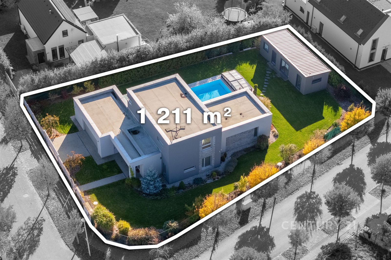 - Plocha parcely: 1211 m²