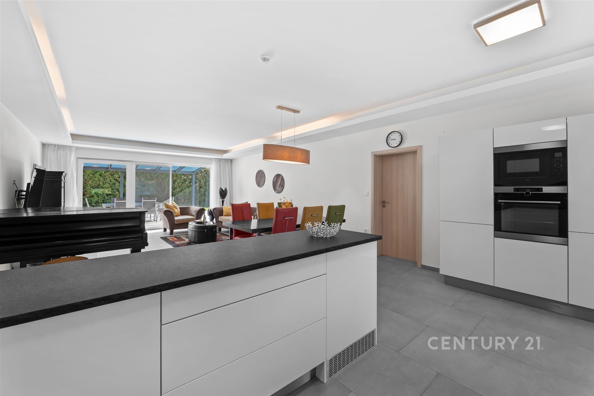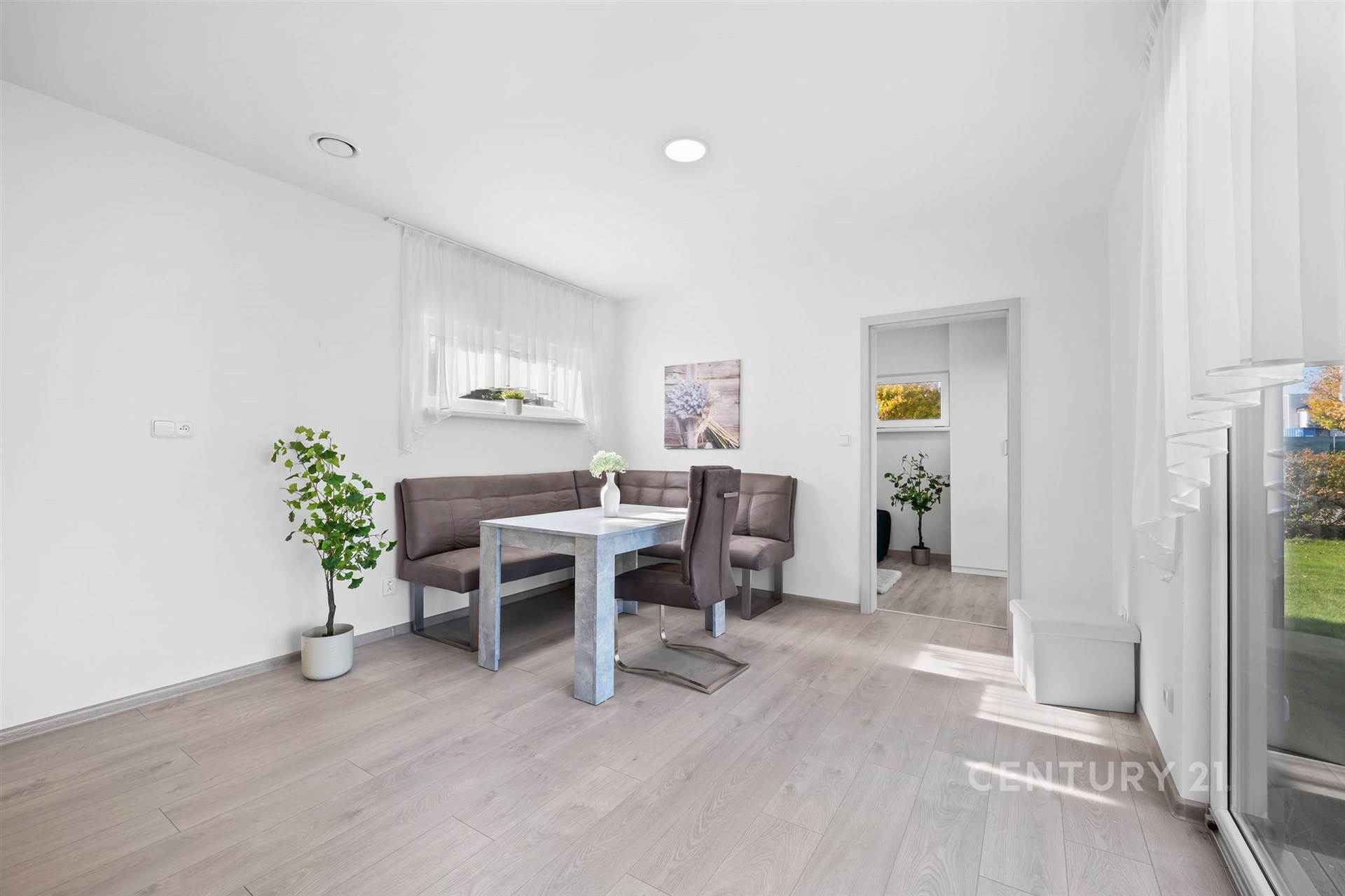 Dispozice domu je promyšlená do posledního detailu – přízemí tvoří soukromé rodičovské křídlo s ložnicí, šatnou a koupelnou, zatímco v patře se nachází tři samostatné dětské pokoje s vlastní koupelnou. Dominantou přízemí je otevřený obytný prostor s kuchyní a přímým vstupem na terasu.