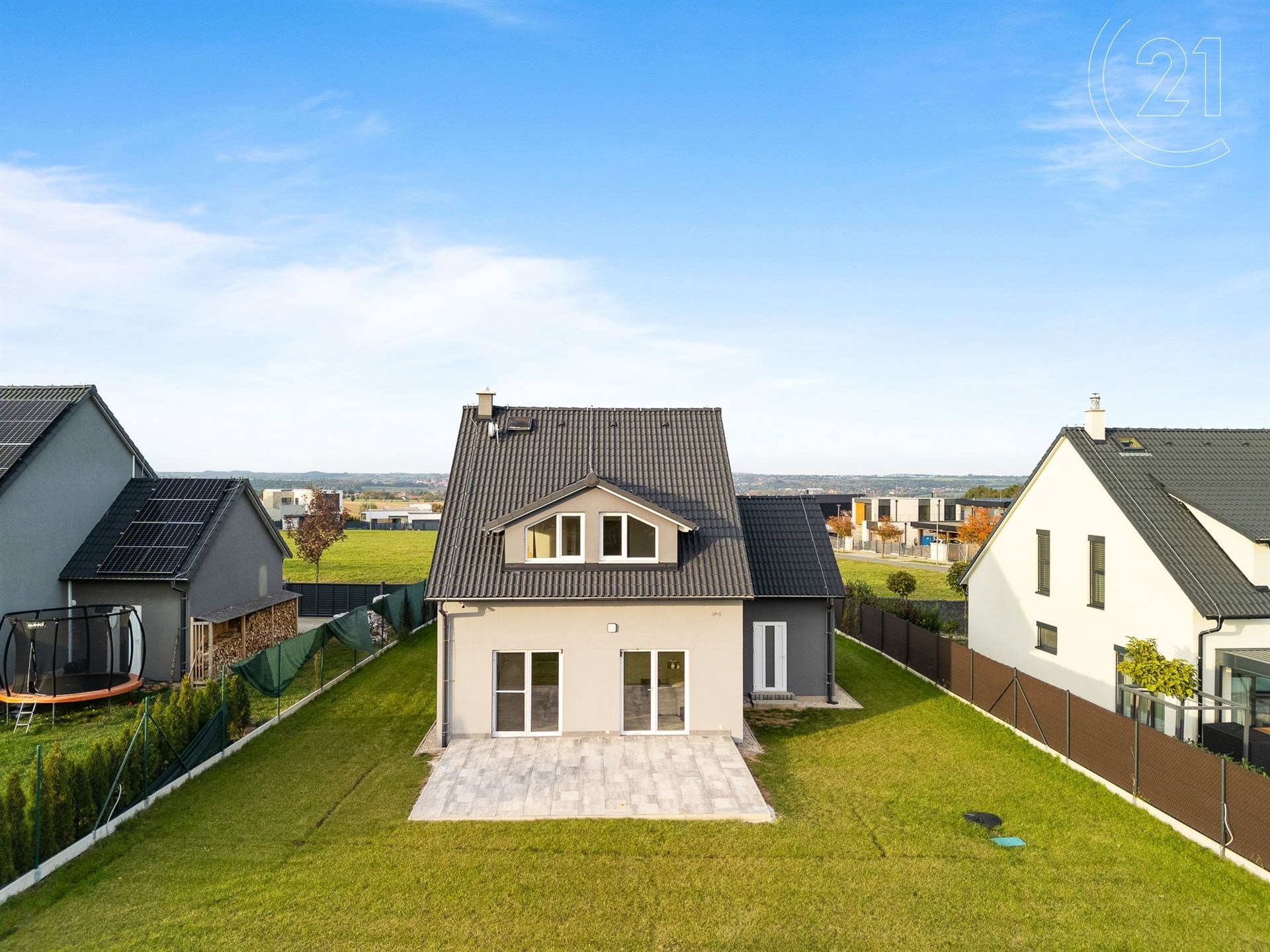 K nemovitosti náleží prostorný rovinatý pozemek, který poskytuje dostatek prostoru pro rodinné aktivity, relaxaci i případné další úpravy dle představ nového majitele. Trávník je již založený a na pozemku byl instalován automatický zavlažovací systém, který výrazně usnadňuje údržbu zahrady. Dům je zároveň vybaven moderním zabezpečovacím systémem Jablotron a kamerovým systémem, což zajišťuje vysokou úroveň bezpečnosti a klidné bydlení. Interiér doplňuje stylová kuchyňská linka vybavená všemi potřebnými spotřebiči, která tvoří přirozené centrum domu a nabízí ideální prostor pro vaření i společné chvíle s rodinou.