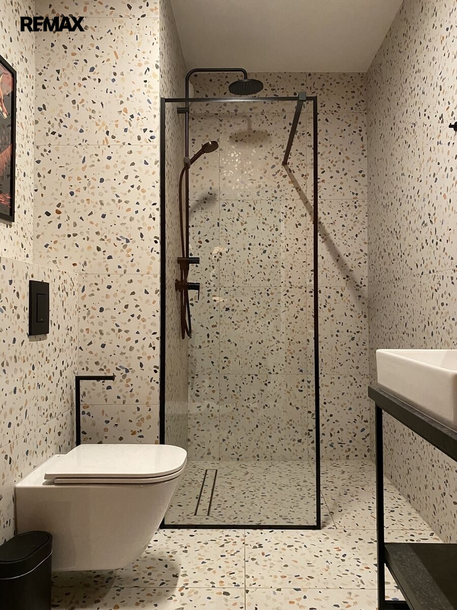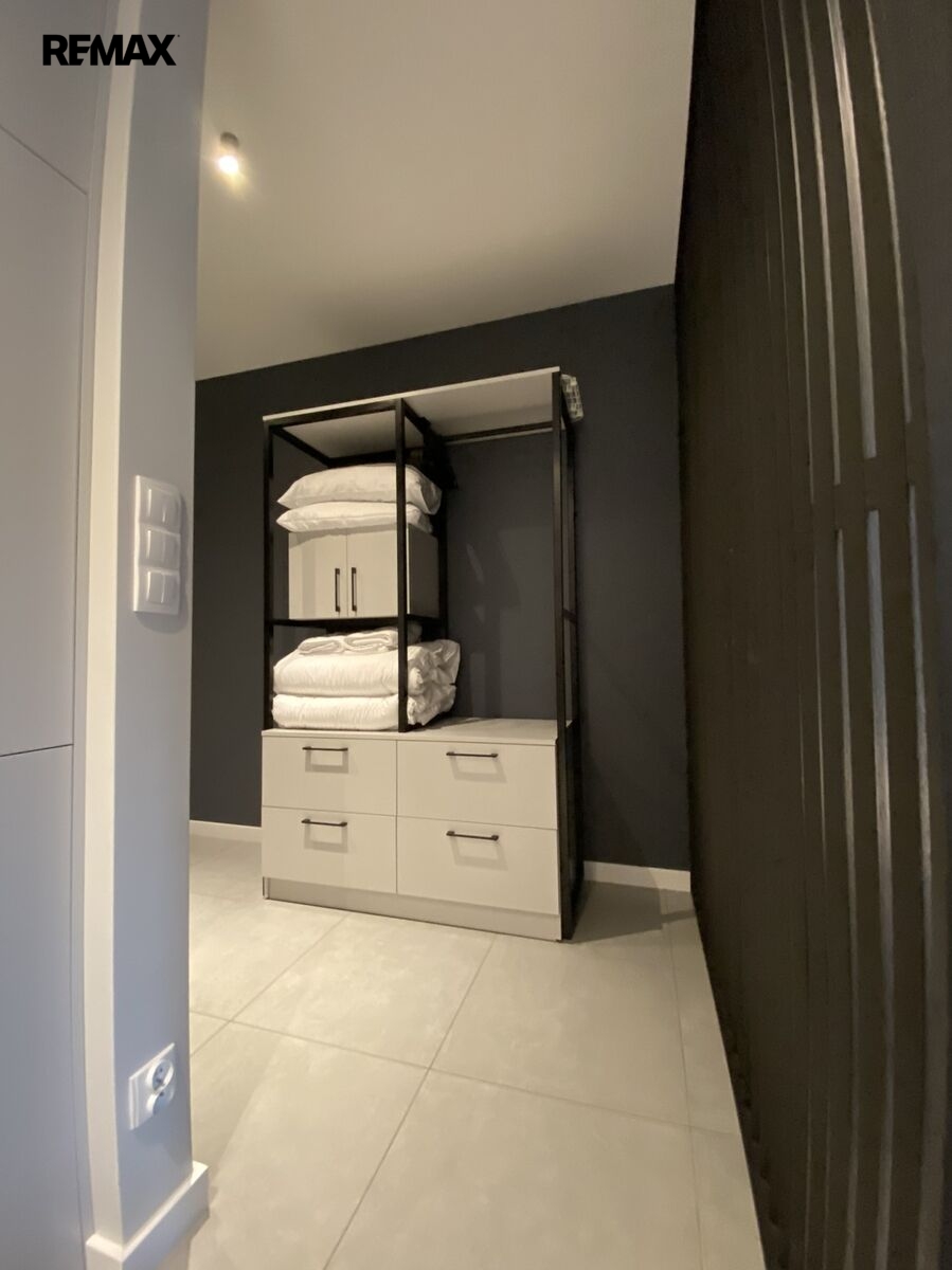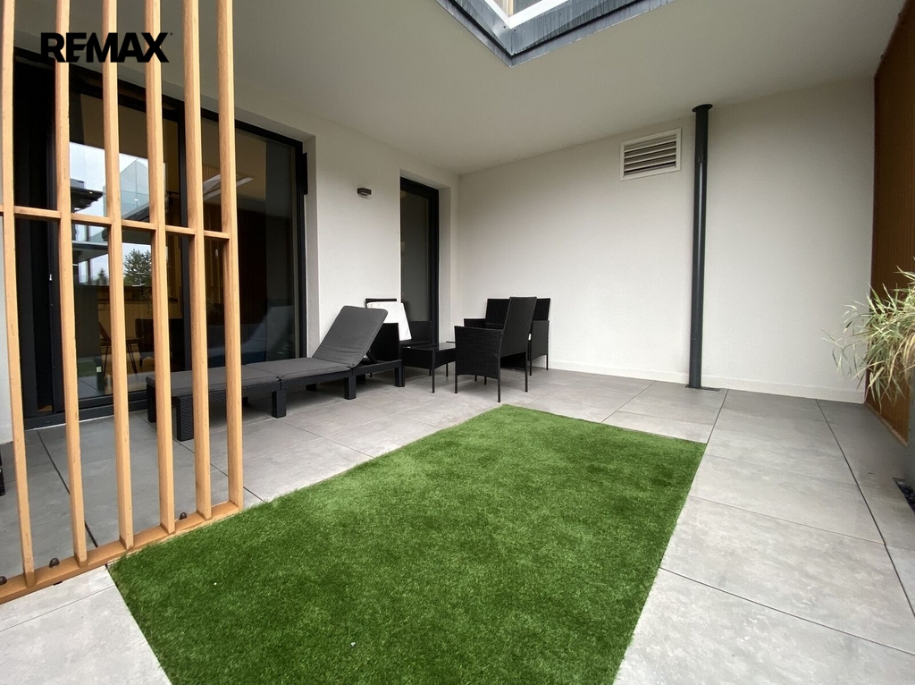 Apartmán se nachází v 1NP. Developerem byl dokončen na klíč s užitnou plochou 34 m² a terasou 22 m². O teplotní pohodu se stará podlahové topení, v létě oceníme klimatizaci. Plně vybavená kuchyně s vestavnou lednicí, myčkou, varnou deskou, mikrovlnou troubou a také veškerým nádobím. Obývací pokoj má rozkládací sedací soupravu, postel, nábytek a televizi. Koupelna se sprchovým koutem a toaletou. Vše co budete potřebovat se zde již nachází.