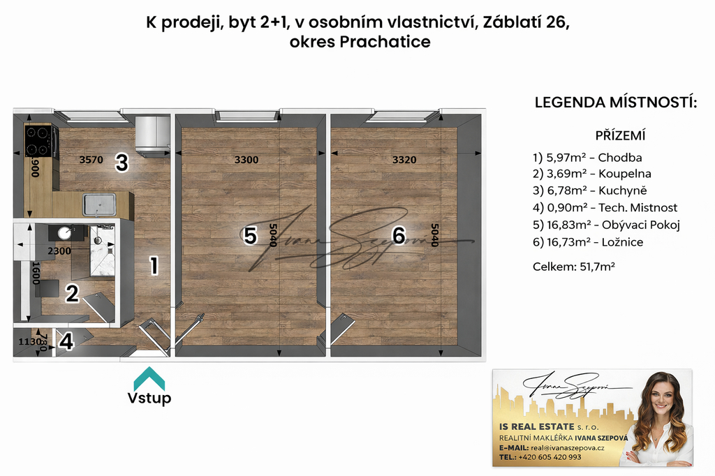 | Dispozice/podlahová plocha: | 2+1/52 m² |