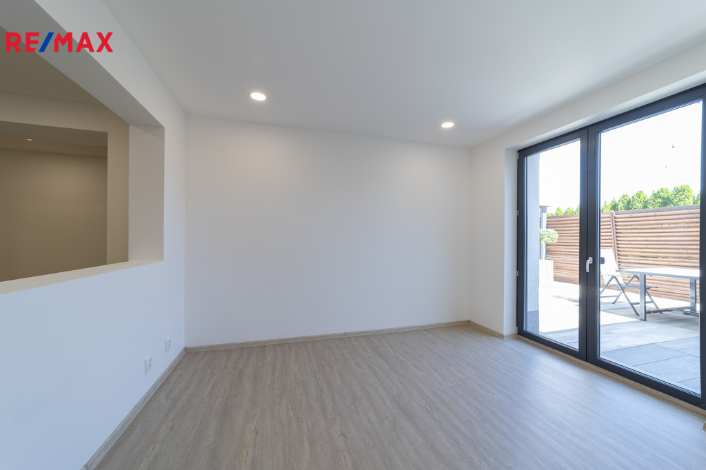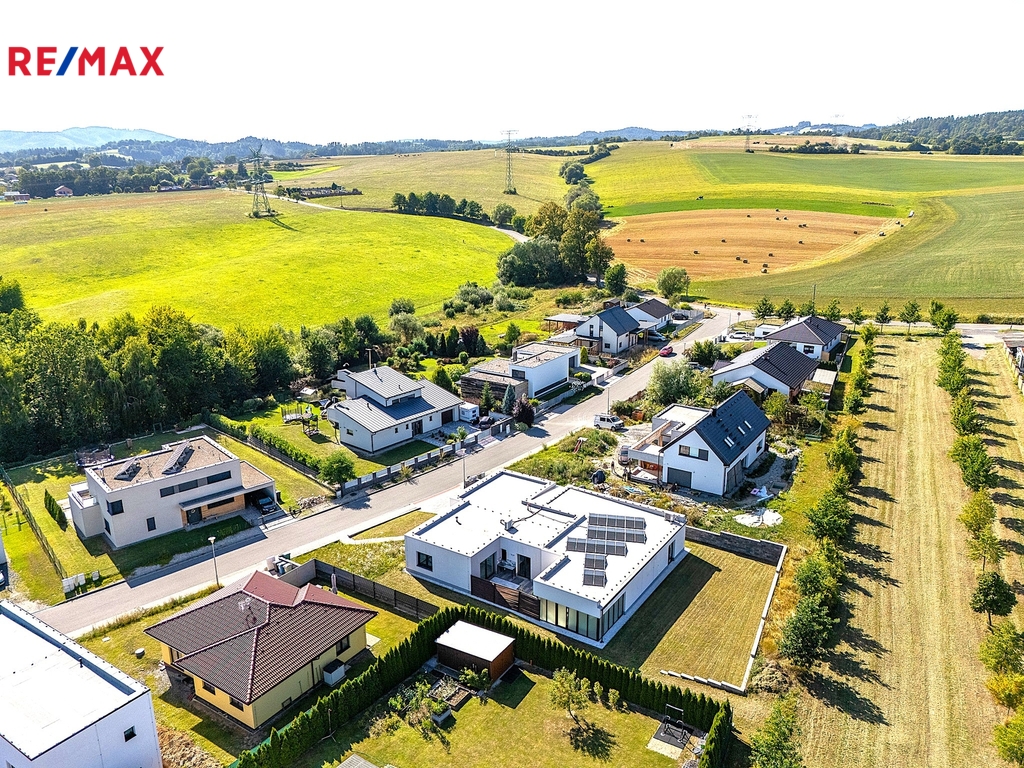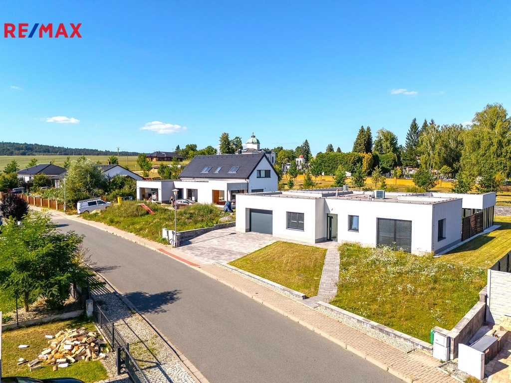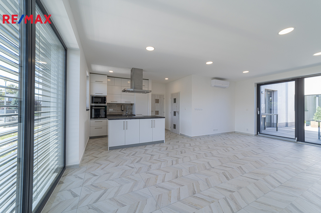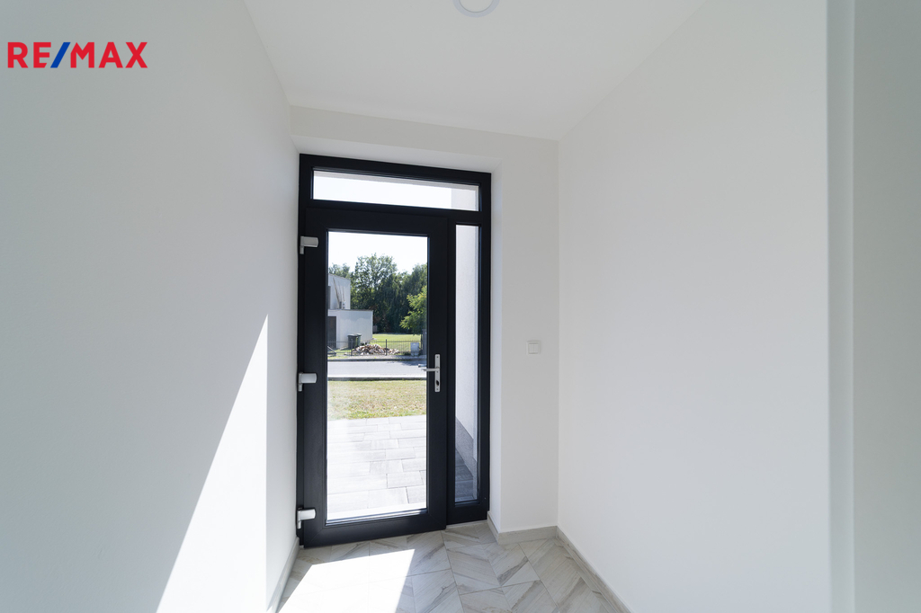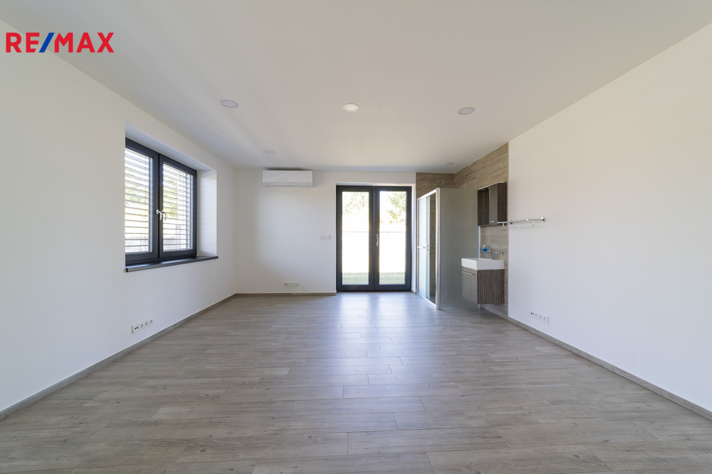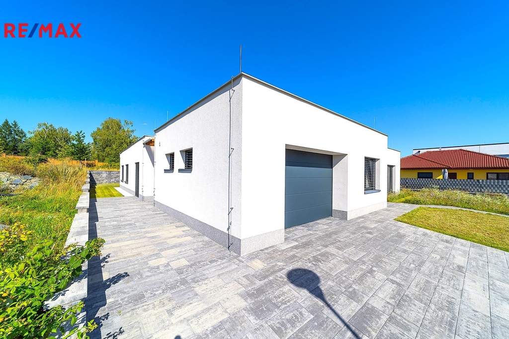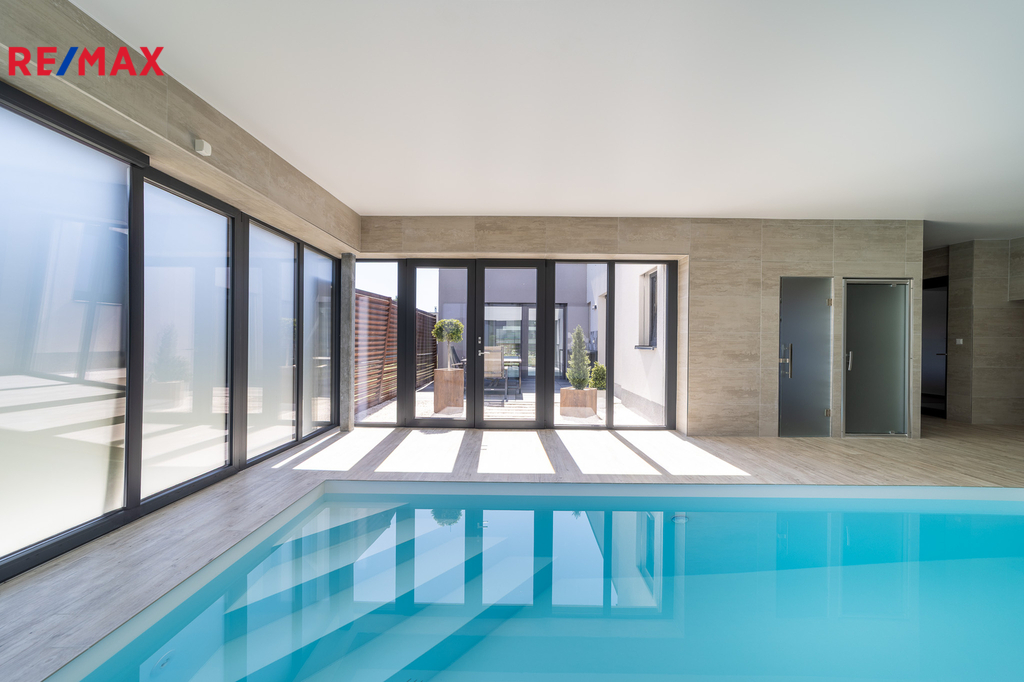 Dům ve tvaru písmene C je řešen celý jako bezbariérový s dispozičním řešením 5kk, dále disponuje atriovou terasou, vnitřním vyhřívaným bazénem, finskou saunou, parní místností, fit zónou, prostornou garáží a dvěma koupelnami. Jelikož má jeden z pokojů i vlastní sociální zázemí a přípravu pro kuchyňskou linku, může tato garsoniera sloužit nejen pro hosty, ale bude vhodná i pro starší děti a jejich partnery, nebo prarodiče, kteří ocení samostatný bezbariérový vstup do zahrady.