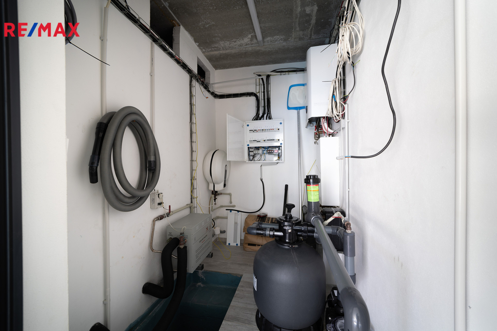 Celý dům byl majitelem postaven za použití kvalitních stavebních materiálů a zařizovacích předmětů s důrazem na dlouhověkost, funkčnost a bezúdržbový provoz. Nízké provozní náklady zajišťuje nová 10kw fotovoltaická elektrárna s instalovaným hybridním měničem. Díky této úspoře můžete pohodlně dobíjet přes whale box váš elektromobil přímo v garáži. Průměrná roční spotřeba elektřiny činí pouze 18MWh. V této spotřebě je již zahrnut ohřev bazénu na 30 stupňů, nepřetržitá filtrace, provoz sauny, parní místnosti, ohřev TUV a podlahové vytápění v celém domě. Tyto nízké provozní náklady byly docíleny i díky použití nejkvalitnějších zdících materiálů Heluz 500, porotherm 400, navíc doplněno o 16cm šedého polystyrenu. Samozřejmostí jsou kvalitní plastová okna s trojsklem doplněna o elektricky ovládané hliníkové předokenní žaluzie. Pokud se vám i přesto bude v některé části domu zdát horko, ochladí vás některá z klimatizačních jednotek.