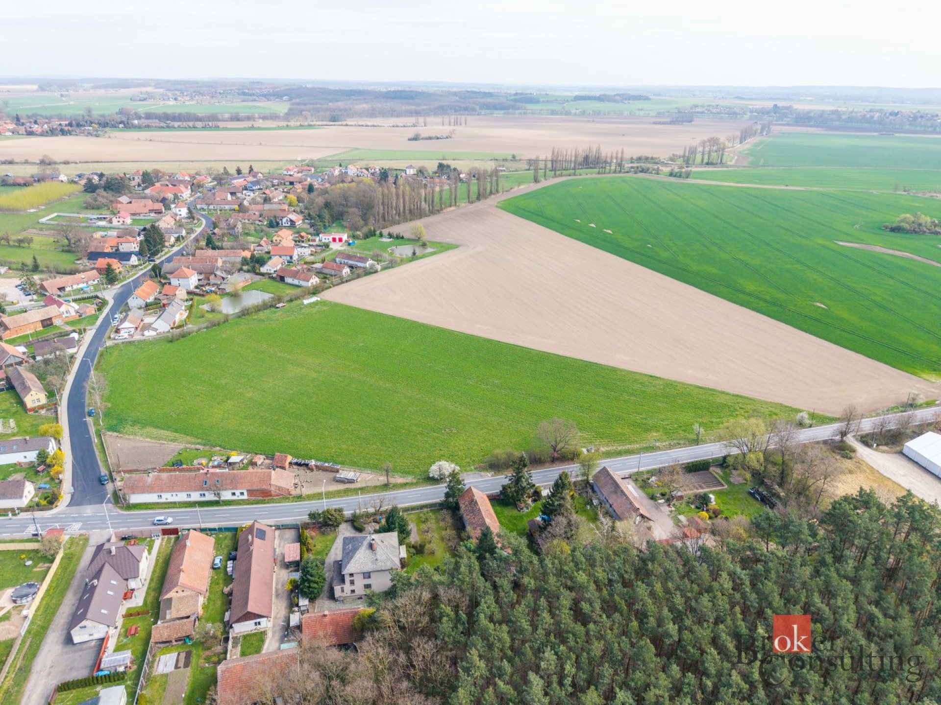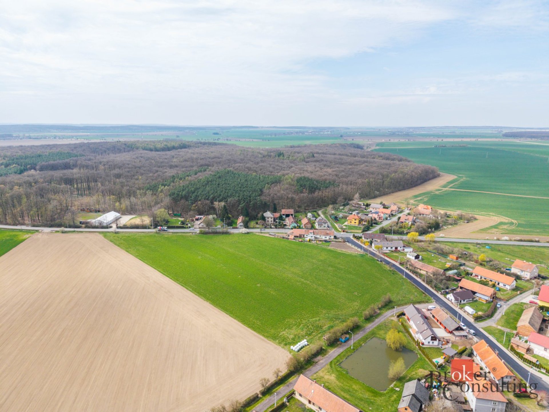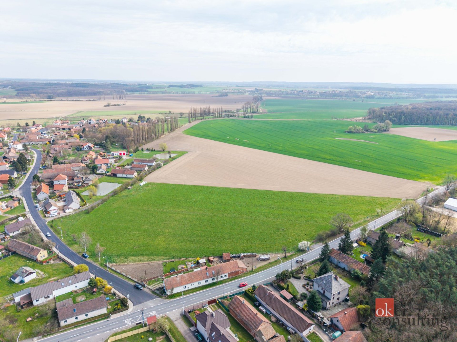 Celková plocha pozemků činí 23.509m2, z toho zastavitelná část tvoří 10.015m2, zbývající část tvoří orná půda, veřejná zeleň a pozemky pro budoucí komunikaci a přístup k jednotlivým parcelám. Aktuálně je zde již připraveno 10 samostatných pozemků pro stavbu rodinných domů. Stavební povolení pro RD není vydáno, je připravena projektová dokumentace k dořešení a následnému vydání stavebního povolení na přístupové komunikace a sítě k jednotlivých pozemkům. Část pozemku mezi již rozdělenými pozemky tvoří orná půda. V případě, že by se v budoucnosti změnil územní plán, mohla by i tato část posloužit jako stavební pro několik dalších domů/pozemků. Nyní je to však nezastavitelné území - orná půda, a to z důvodu místních regulací.