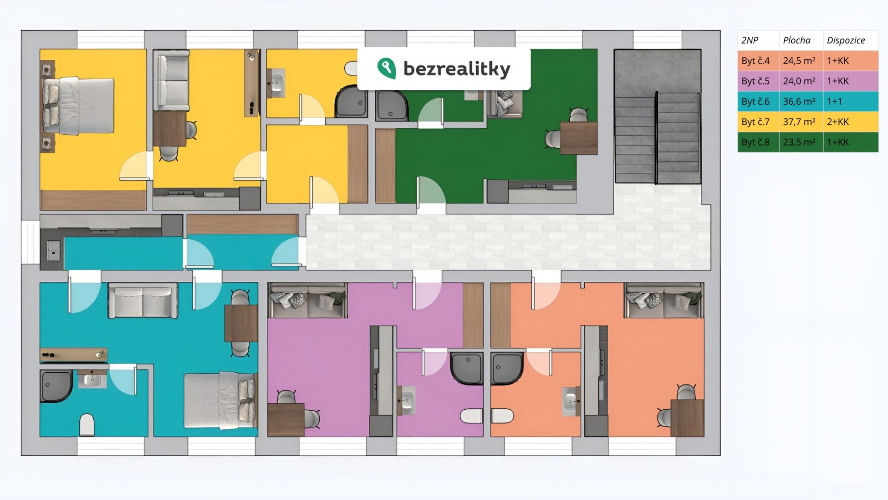 - Dispozice bytu: 1+kk