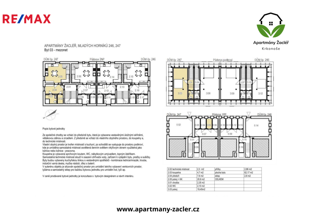 | Dispozice/podlahová plocha: | 2+kk/62 m² |