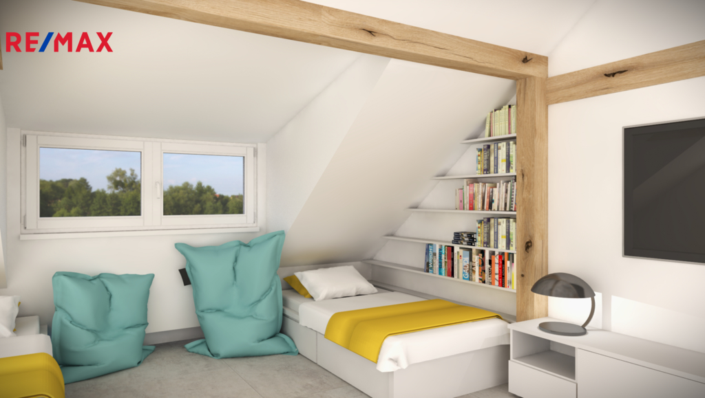 Na podlaze je položena keramická dekorativní dlažba o rozměrech 60x60 cm. Plastová okna jsou jsou z vnitřní strany bílé barvy, vnější antracit a jsou vybavena moderní stínící žaluzií typu plisé.