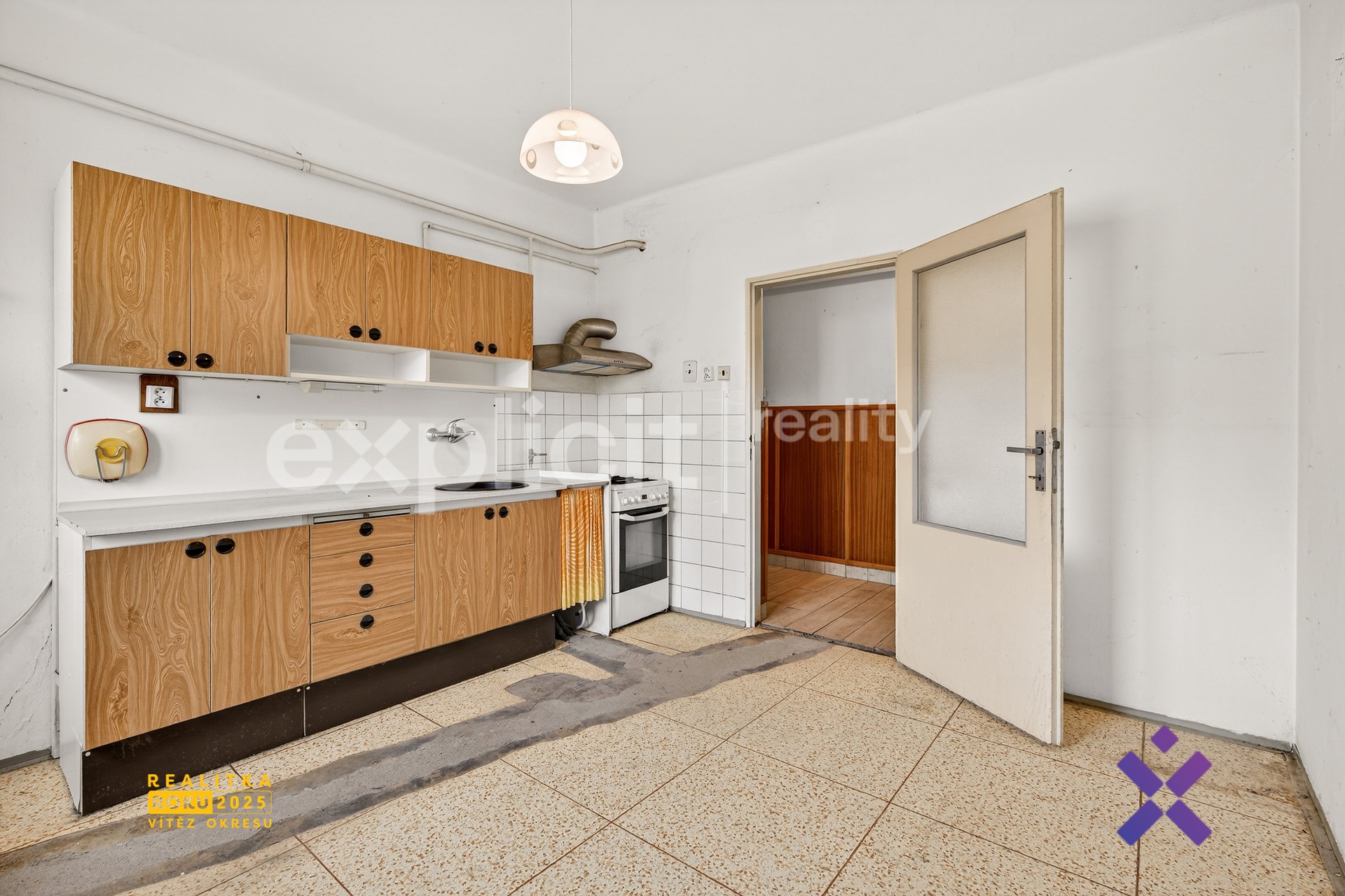 Po levé straně chodby se nachází vstup do hlavní části domu. Po vstupu do domu je po levé straně místnost, která byla dosud využívána jako kuchyně.