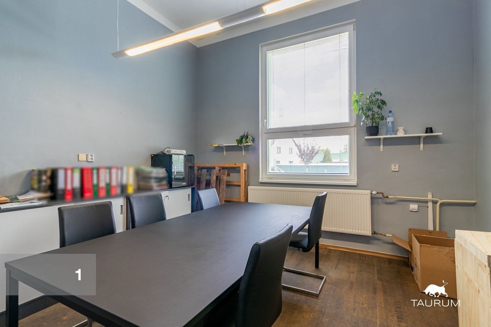 1 přízemní zděná administrativní budova s kancelářemi a zázemím (šatny, sprcha, wc, kuchyňka) o celkové podlahové ploše 405 m2, budova je ve vynikajícím stavu