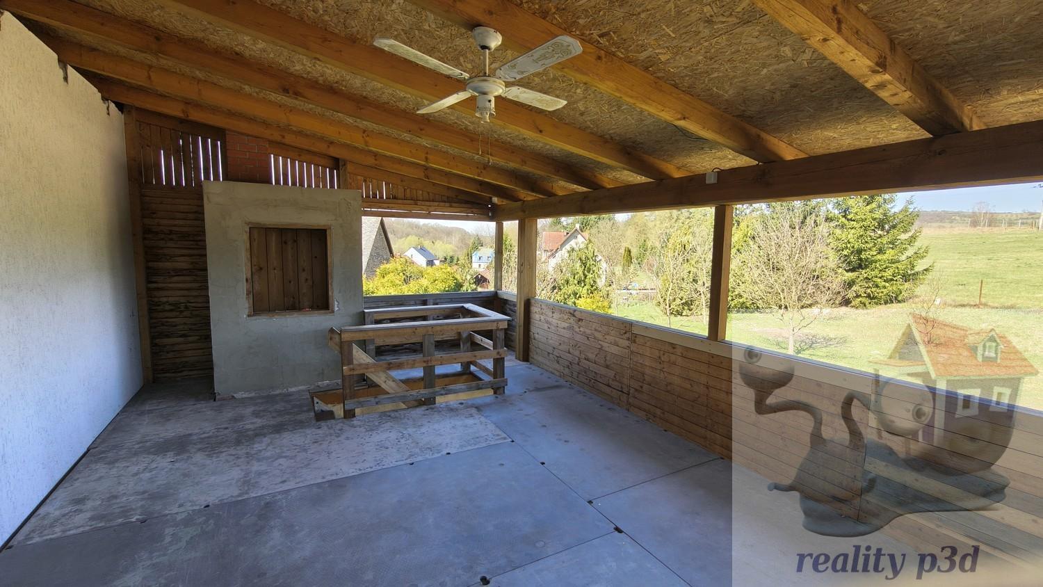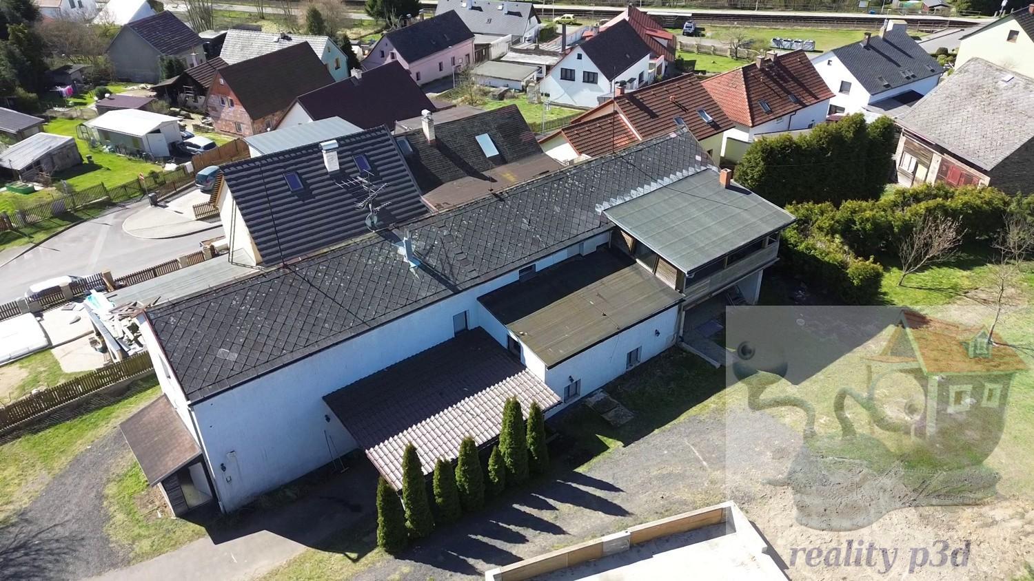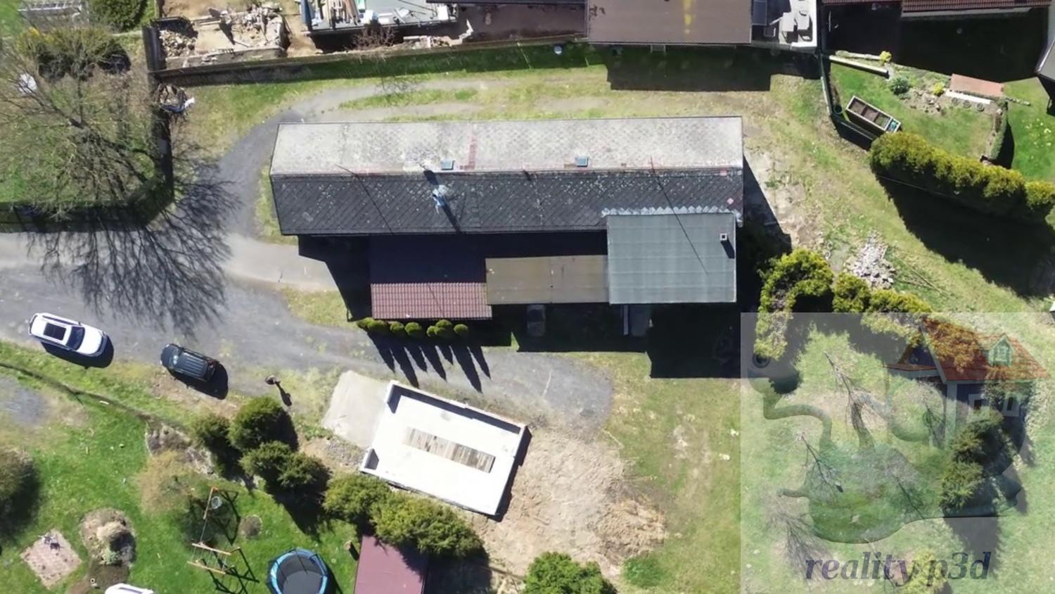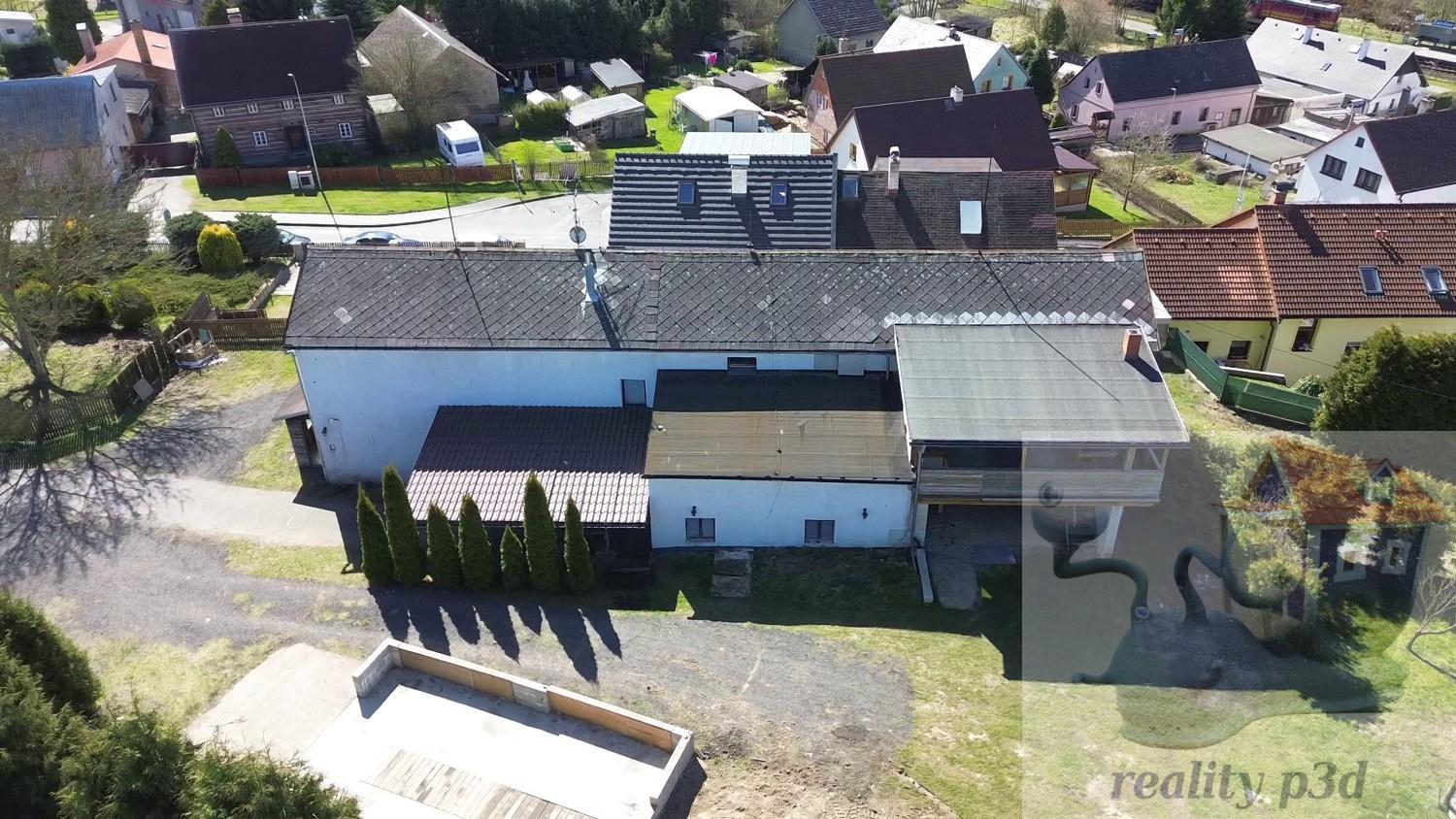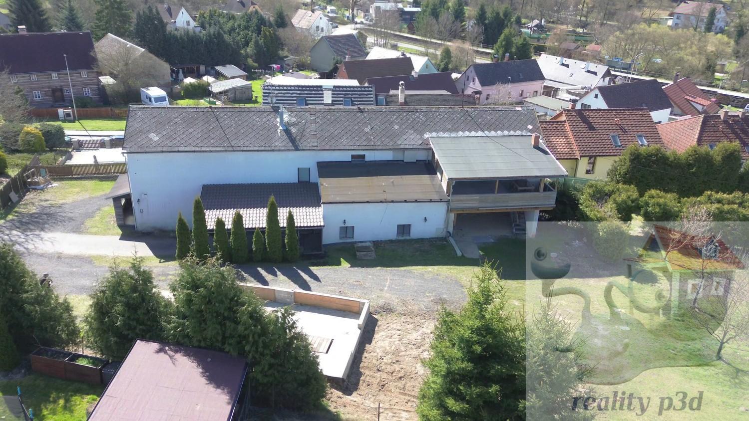 V přízemí domu jsou tři vstupy, z toho jeden přes garáž a kryté stání pro automobil. Dále je zde veliký prostor nyní využívaný jako sklad/dílna. Podlahy zde jsou betonové, je zde komora, WC, kotelna a bytový prostor v nedokončeném stavu a mohl by zde být také byt garsonka se samostatným vchodem i ze zahrady, ústřední topení. Do patra vedou jak kovové schody z prostoru skladu, tak i venkovní schodiště ze zahrady. V patře je byt 2+1, koupelna se saunou a WC, komora. Kuchyň je přes pult propojena s obývacím pokojem, ložnice se vstupem z obývacího pokoje. V celém bytě ústřední topení. Z obývacího pokoje je vstup na velkou zastřešenou terasu, z terasy je možné po schodech sejít na zahradu. Dále je zde další byt a druhá koupelna, WC, prostorem na pračku a saunou, chodba a ložnice. I zde je ústřední topení. Celý prostor je možné využít jako jeden byt. Vytápění je zajištěno plynovým kotlem, teplá voda boiler. Z chodby vstup na půdu, není pochozí, má zateplenou podlahu. Dům je zateplený 7cm polystyrenem. Okna jsou dřevěná z roku 1969. Dům kolaudovaný po rekonstrukci v roce 2004. Z té doby jsou rozvody elektřiny, vody a odpad. Dům není podsklepený. Pozemek o celkové výměře 2082m2. Na pozemku u domu je vybudovaná jímka na dešťovou vodu. Napojení na veřejný vodovod a kanalizaci. Přístupová cesta obecní. Parkování je možné před domem i v garáži a krytém stání. Dům je na klidném místě nedaleko od centra obce. Je zde veškerá občanská vybavenost, pošta, lékař, obchody, škola, školka atd.. Autobusové a vlakové spoje do České Lípy a Děčína.