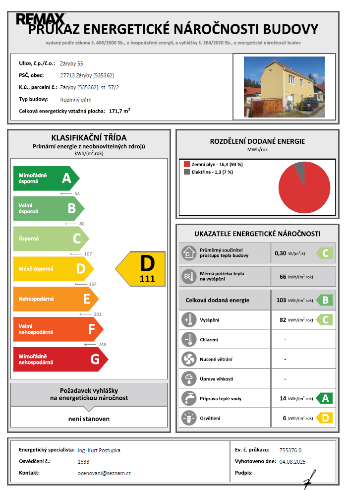 - Energetický ukazatel podle vyhlášky: č. 264/2020 Sb.