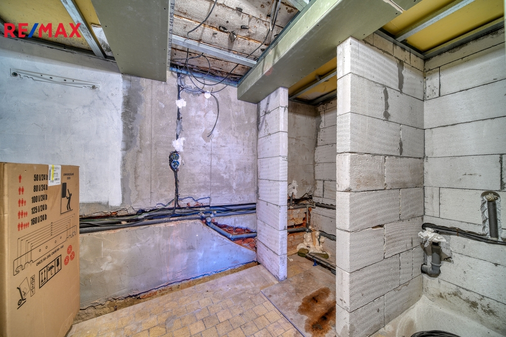 Koupelna je připravena k dokončení podle představ nových majitelů. WC je samostatné.
