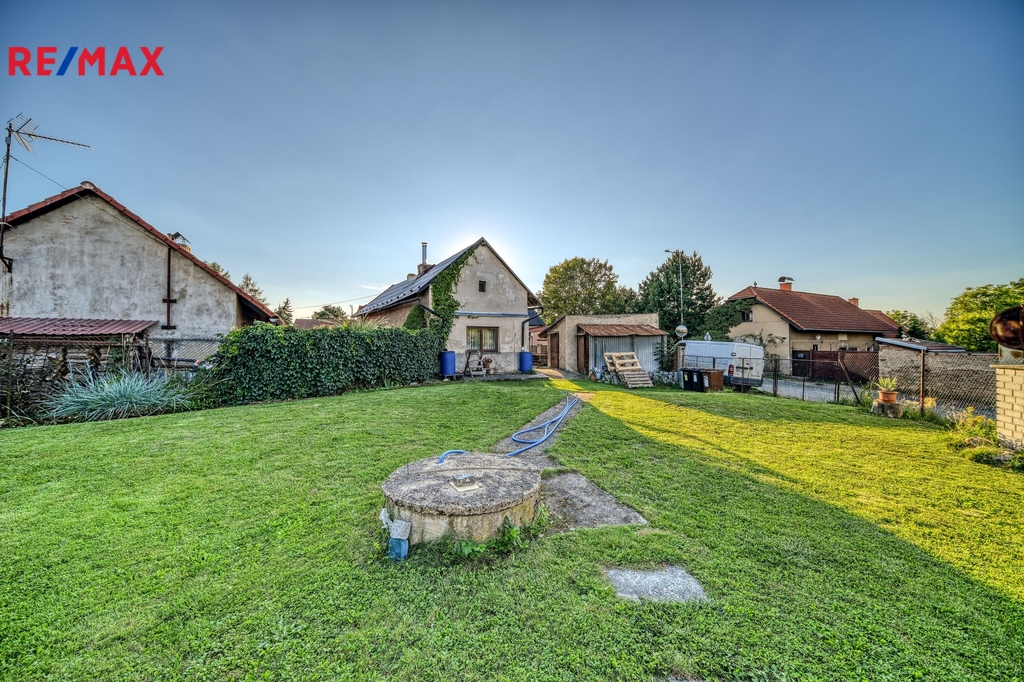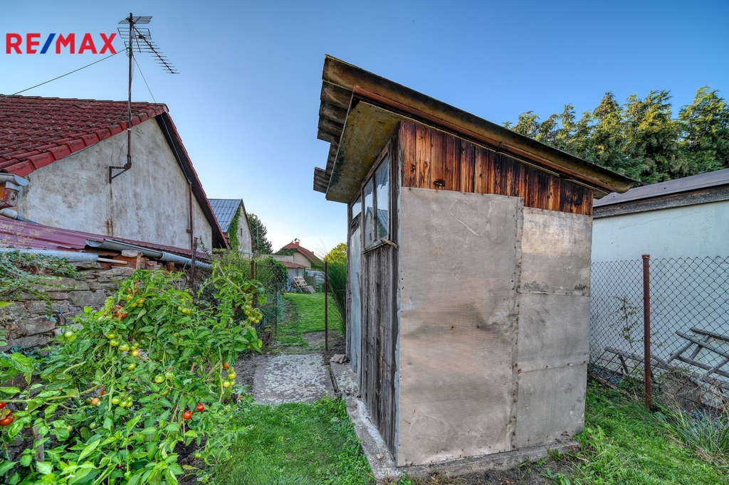 Na dvoře se nachází sklad, dílna, prostor pro posezení i zahradničení. V blízkosti domu je garáž, která nabízí další úložný prostor nebo parkování.