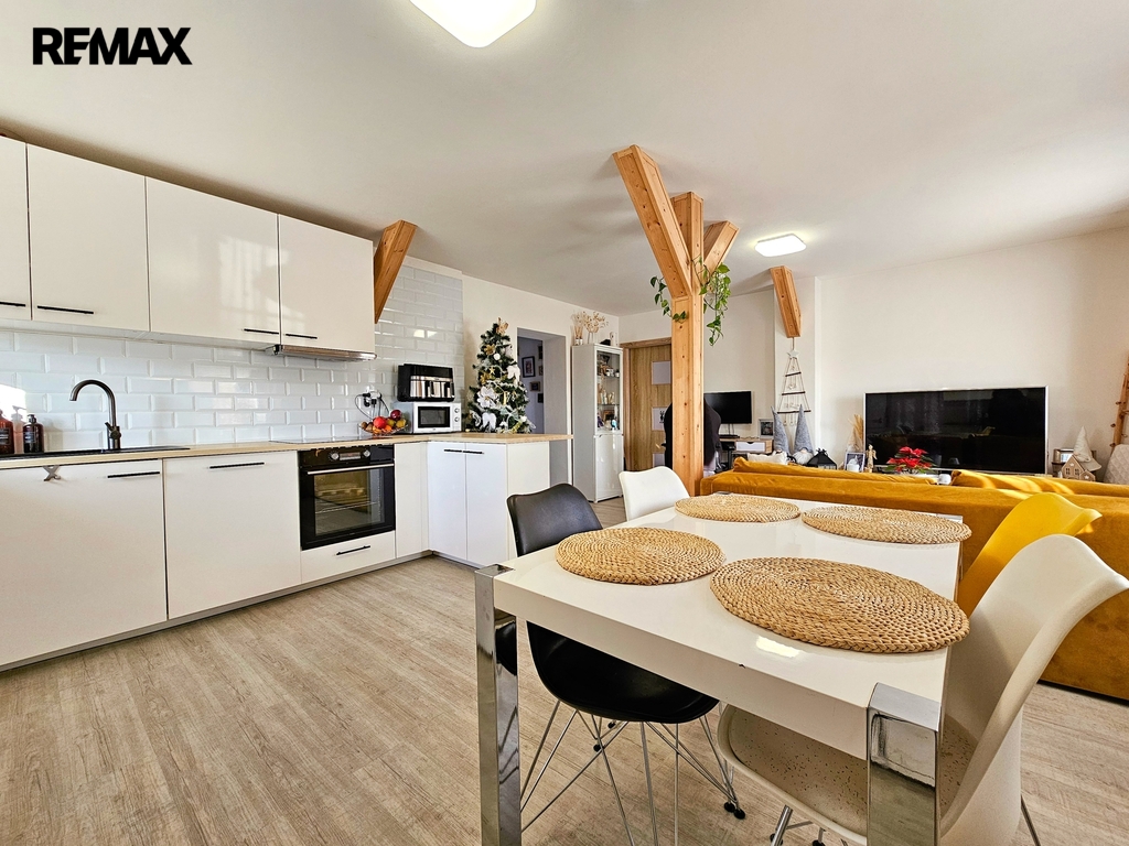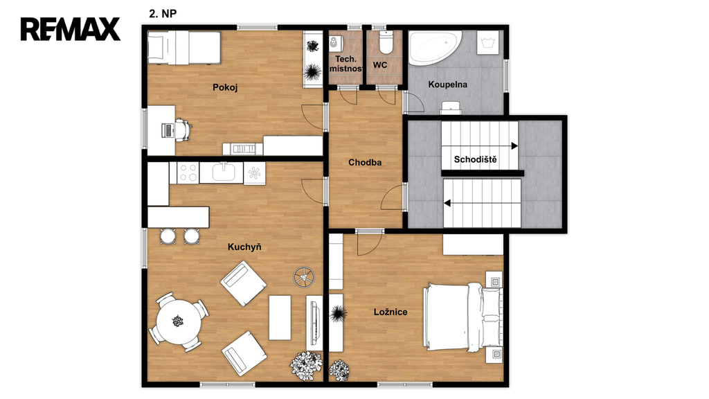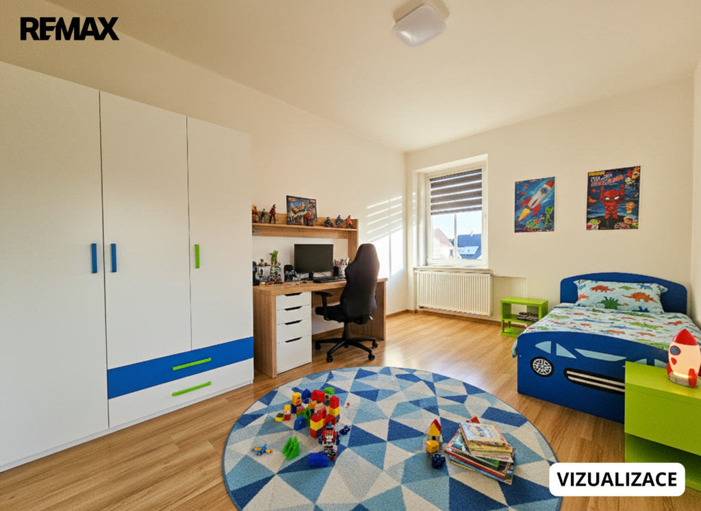 • 2. NP – dispozičně shodný byt 3+kk o ploše cca 80 m², rovněž po rekonstrukci (odlišné barevné provedení), momentálně neobsazený.