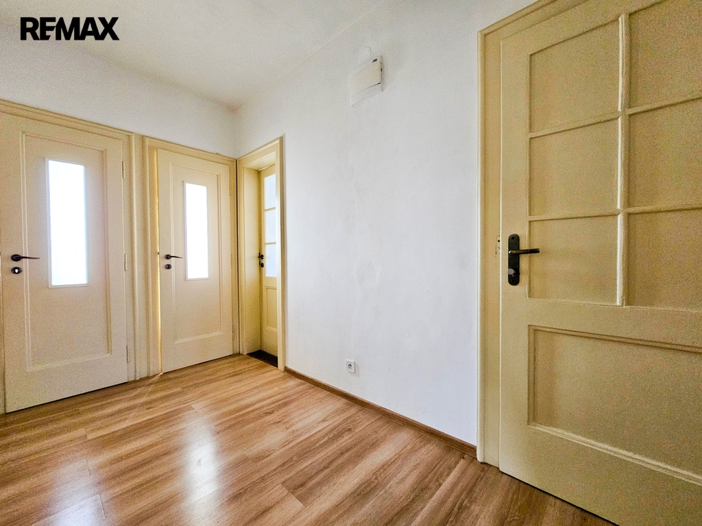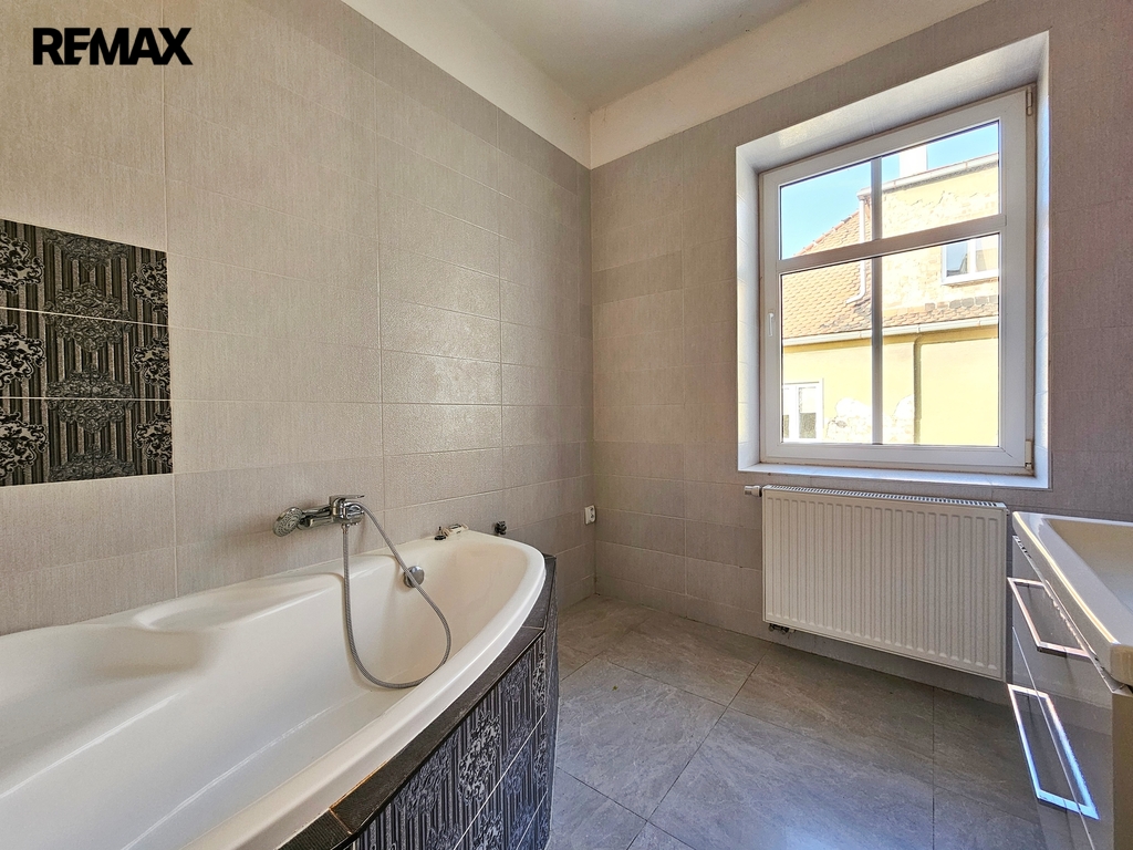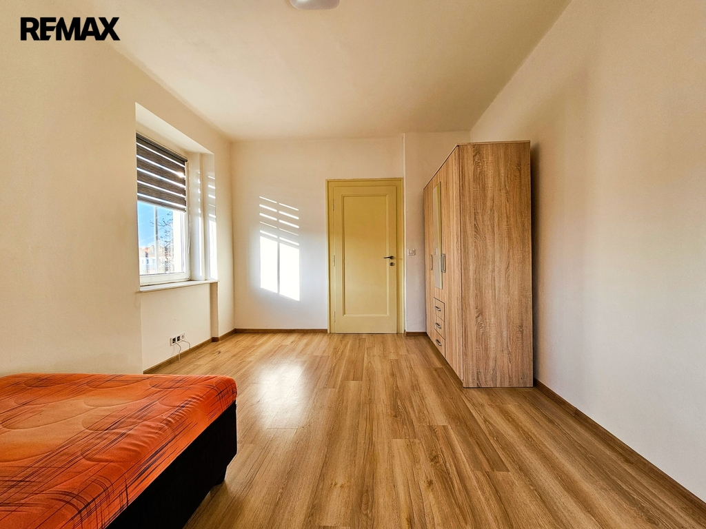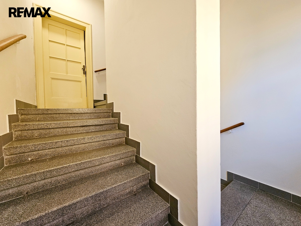 • 1. NP – byt o dispozici 3+kk, podlahová plocha cca 80 m². Byt je po kompletní rekonstrukci, zachovává původní obložky, disponuje novými podlahami, koupelnou i kuchyňskou linkou. Aktuálně je dlouhodobě pronajat, nájemníci mají zájem v nájmu pokračovat.