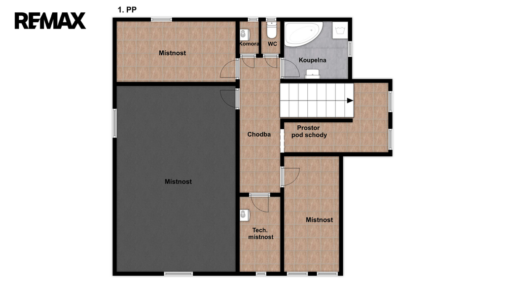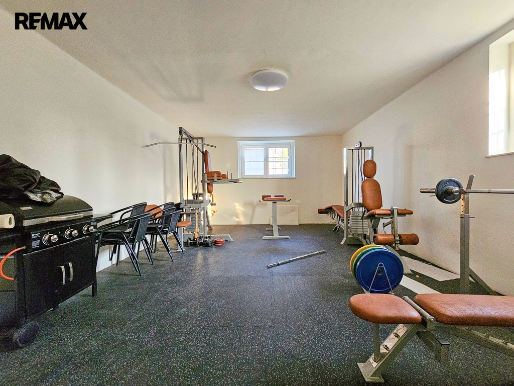 Suterén domu je díky vysokým stropům plnohodnotně využitelný a nabízí široké možnosti dalšího rozvoje – např. vybudování společného zázemí pro nájemníky (fitness, klubovna, vinný sklep, apod.) nebo další bytové jednotky. Nachází se zde koupelna, WC, dvě samostatné místnosti, velký prostor s přípravou na kuchyňskou linku, technické místnosti a skladové prostory. Podlahová plocha suterénu činí cca 70 m².